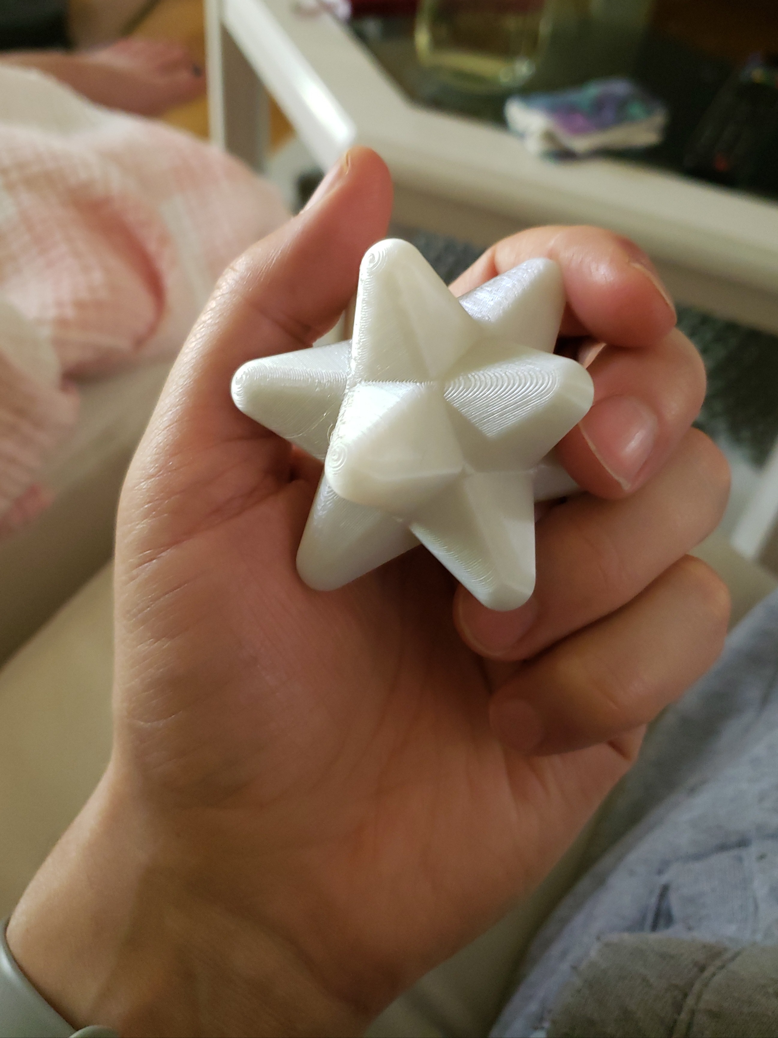 Một khối đa diện 12 mặt với các đỉnh bo tròn lồi ra từ mỗi mặt, tương tự vật phẩm Mảnh Sao trong Animal Crossing: New Horizons. Có thể in bằng PLA hoặc vật liệu phát quang trong tối.