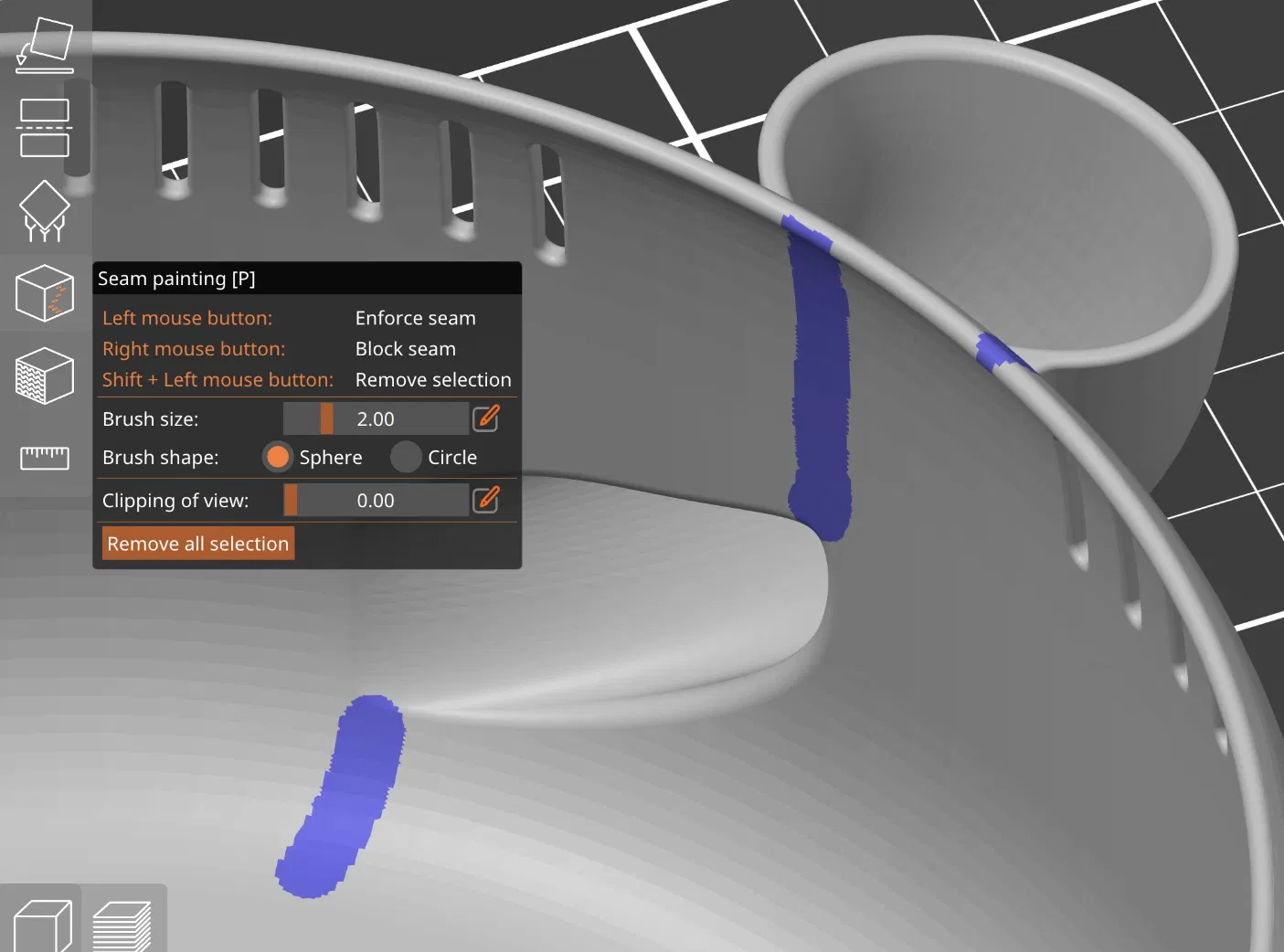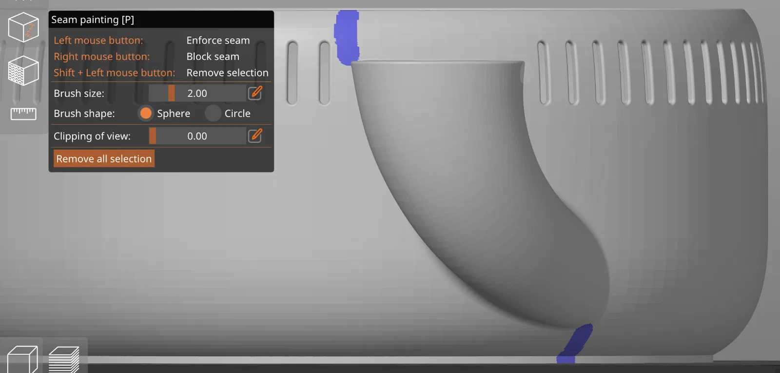 Seam position: Nearest Scarf join placement: Contours Support: Organic on Build plate only