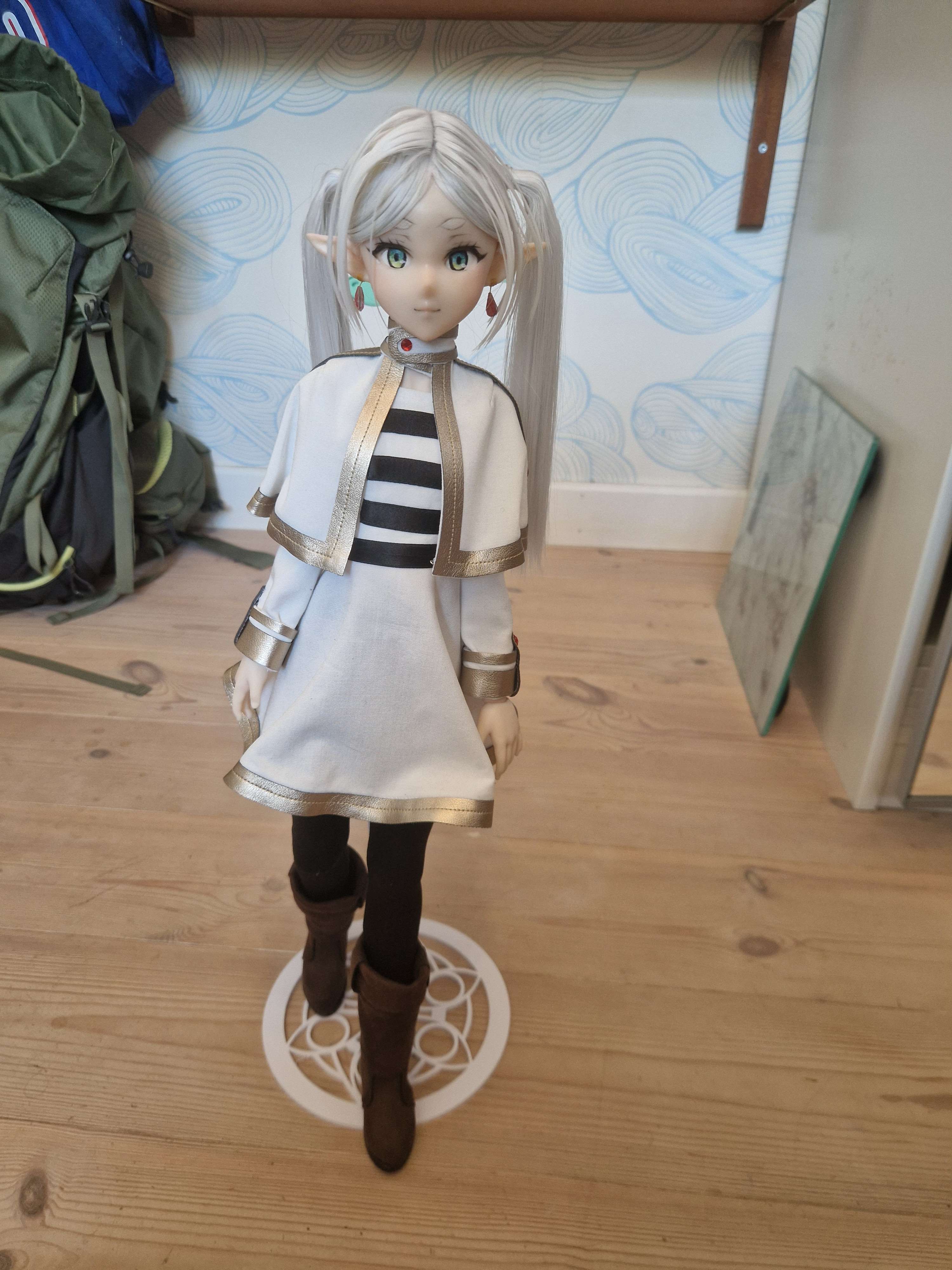 Mẫu đầu Frieren dành cho búp bê Dollfie Dream. Dù có thể hơi lỏng và cần thêm băng keo giấy để cố định, cùng với keo blu-tac cho nắp đầu, mẫu này vẫn là một lựa chọn tuyệt vời cho những ai yêu thích Frieren. Tai được tạc sẵn, mang lại vẻ ngoài độc đáo.
