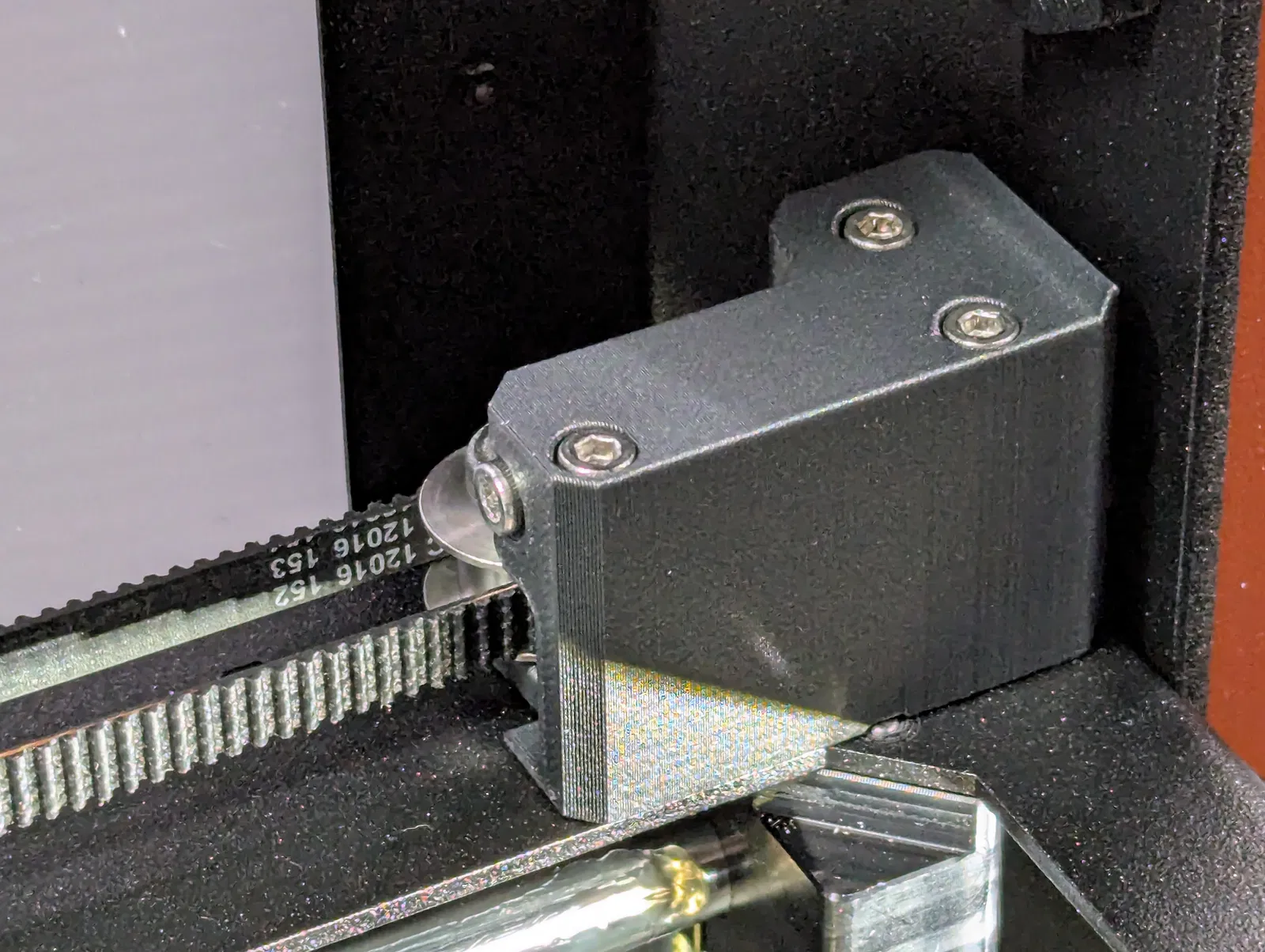 Có một số khác biệt nhỏ trong cách lắp đặt bộ căng dây đai trên Core One. Điều này có thể khiến các trục bị lệch một chút. Bộ phận này bổ sung một điểm dừng có thể điều chỉnh ở phía trước bên phải, cho phép bạn bù đắp cho sự khác biệt trong quá trình lắp đặt.
