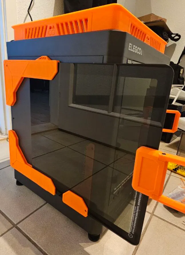 Khác với các loại đế gắn kính mặt trên thông thường, mẫu holder này cho phép bạn gắn kính mặt trên của máy in Elegoo Centauri Carbon từ bên hông, tiện lợi hơn cho việc sử dụng và tùy biến.