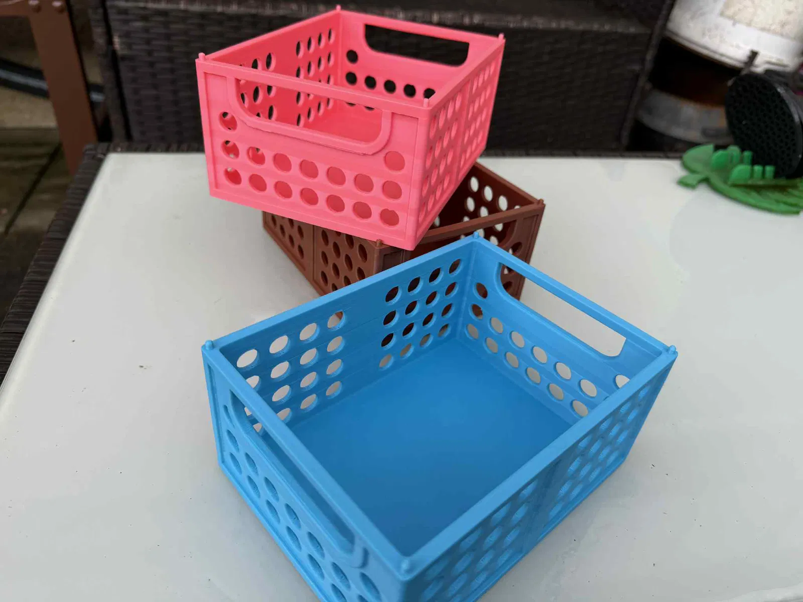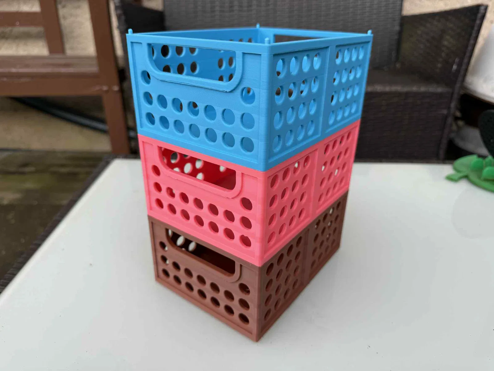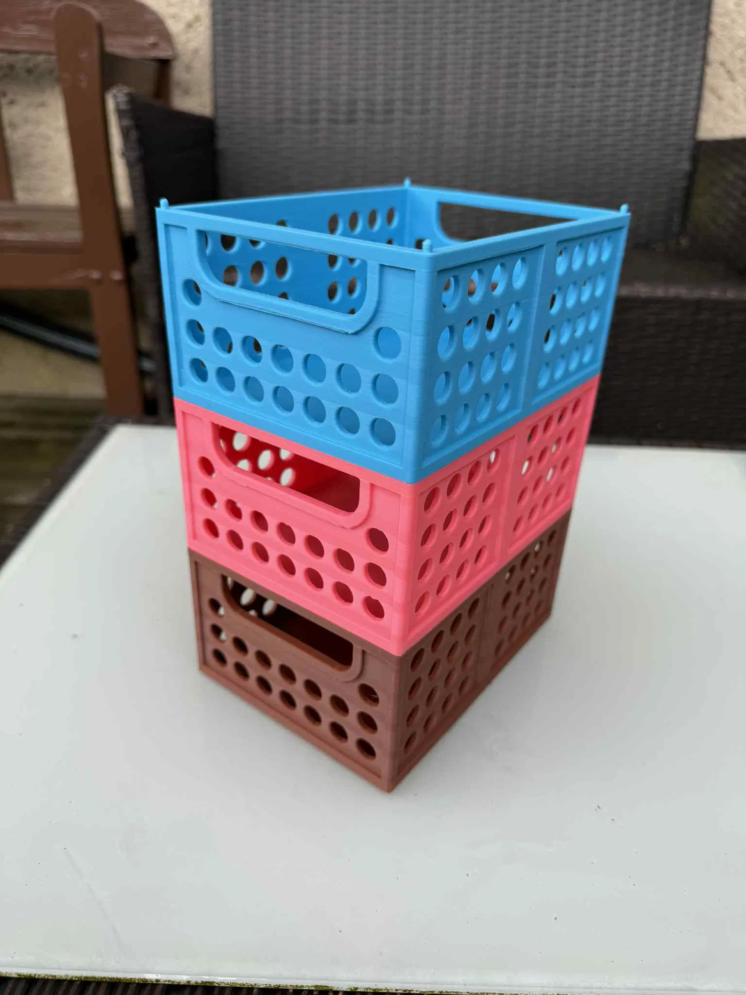 Hộp, thùng chứa có kích thước 160x120x70mm, lý tưởng để thu hoạch trái cây, rau củ hoặc bảo quản thực phẩm. Các hộp có thể xếp chồng lên nhau, làm từ PLA/PETG và không cần support. Thích hợp cho mọi nhu cầu lưu trữ của bạn.