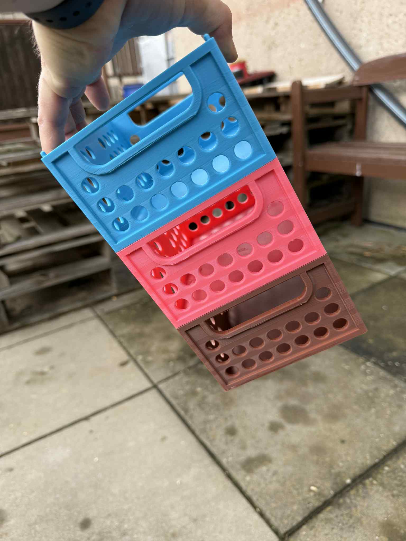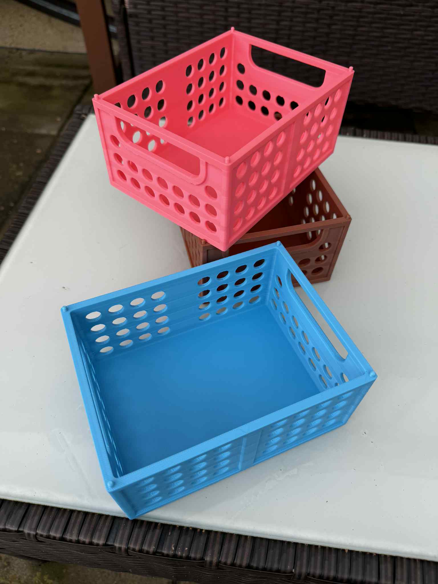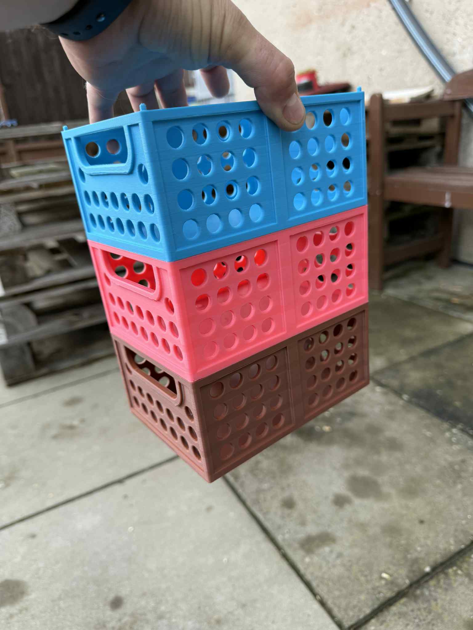 Hộp, thùng chứa có kích thước 160x120x70mm, lý tưởng để thu hoạch trái cây, rau củ hoặc bảo quản thực phẩm. Các hộp có thể xếp chồng lên nhau, làm từ PLA/PETG và không cần support. Thích hợp cho mọi nhu cầu lưu trữ của bạn.
