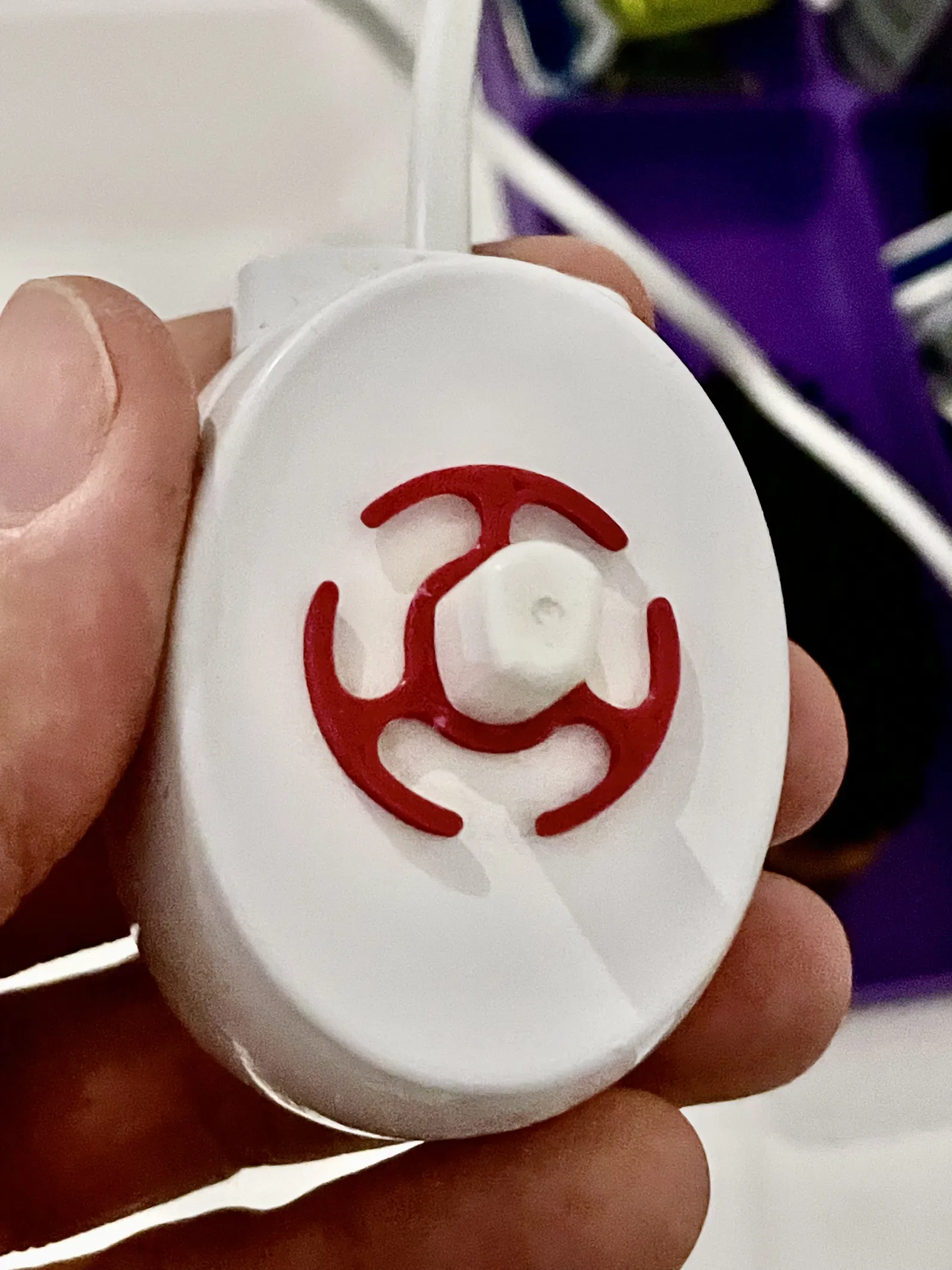 In với độ cao lớp nhỏ (small layer height), trên mặt phẳng. Sau đó, tôi khuyên bạn nên đặt nó úp xuống (mặt phẳng ở trên) trên đế sạc.
