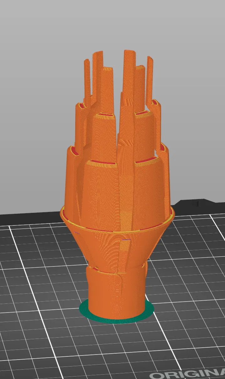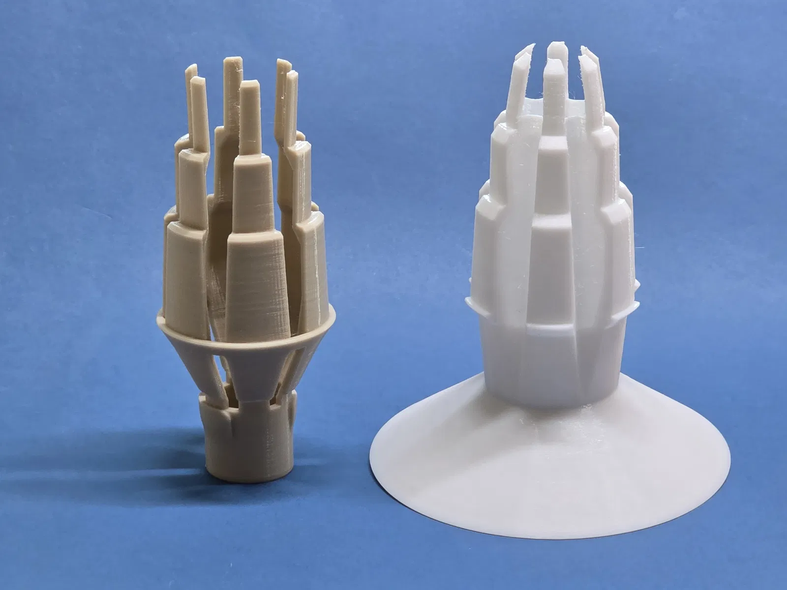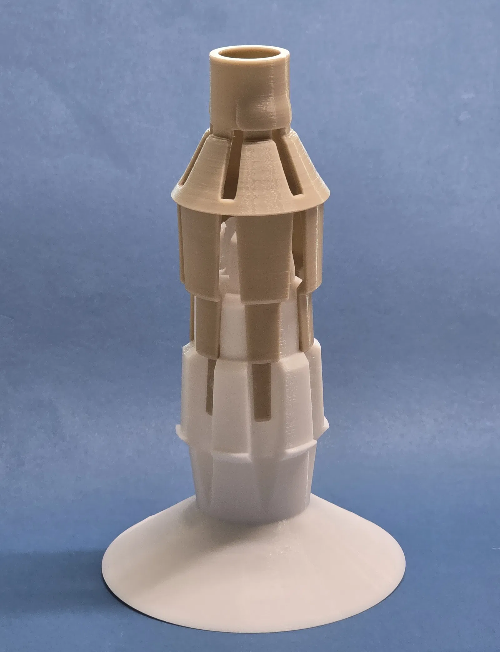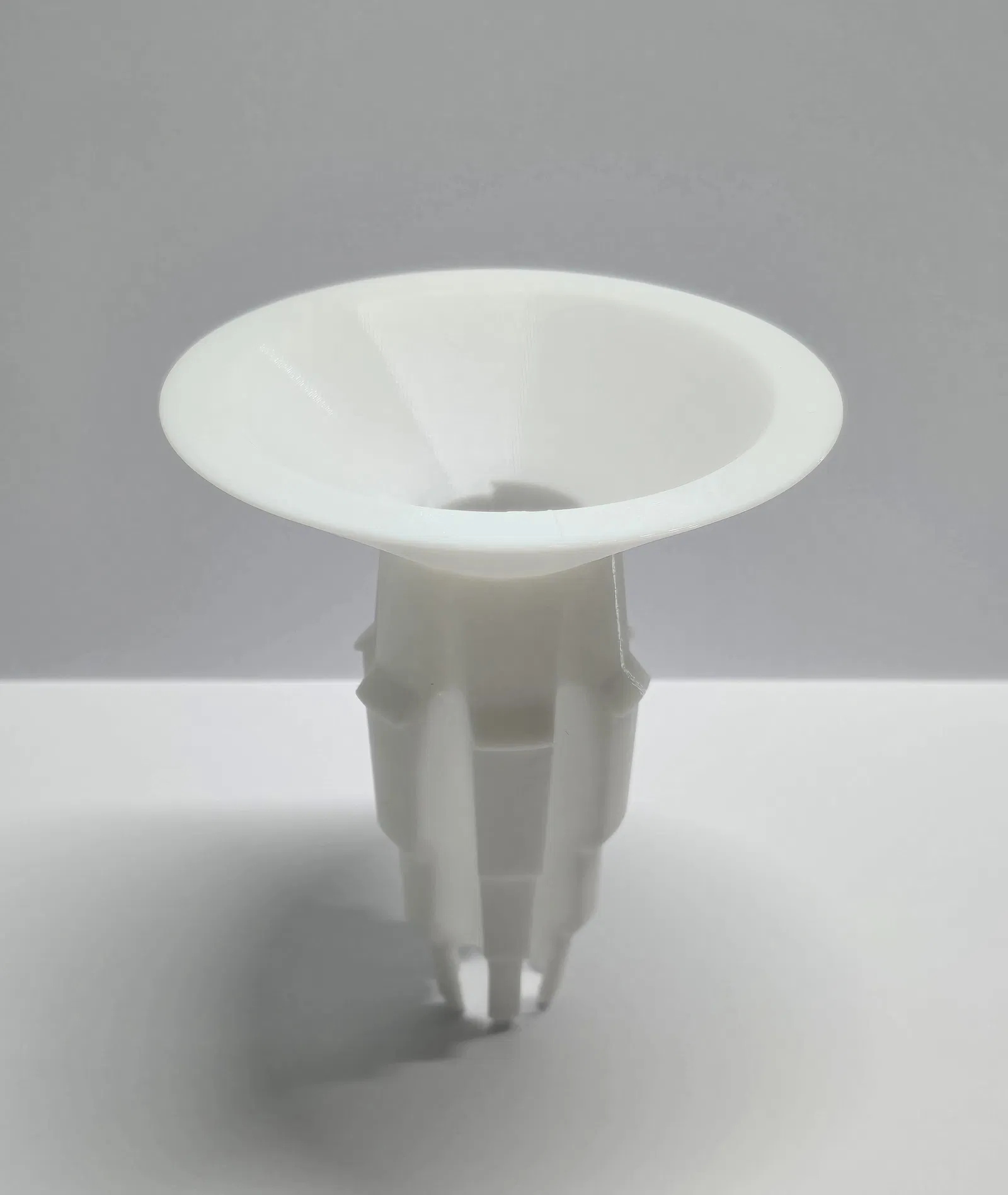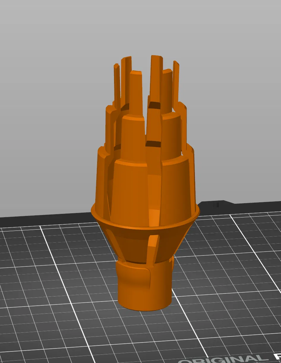 - Tôi đã sử dụng 15% infill dạng gyroid và 2 lớp tường. Bạn có thể tăng mật độ infill cho 23mm dưới của phần phễu để có bề mặt trên của phân đoạn hình nón mịn hơn.