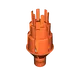 - Phần giữ trên – trượt vào chai rỗng (chai cho). Các ngạnh có bậc, côn của nó tạo ra độ ôm khít cho nhiều loại cổ chai khác nhau, giữ cho chai cho thẳng đứng và ổn định.