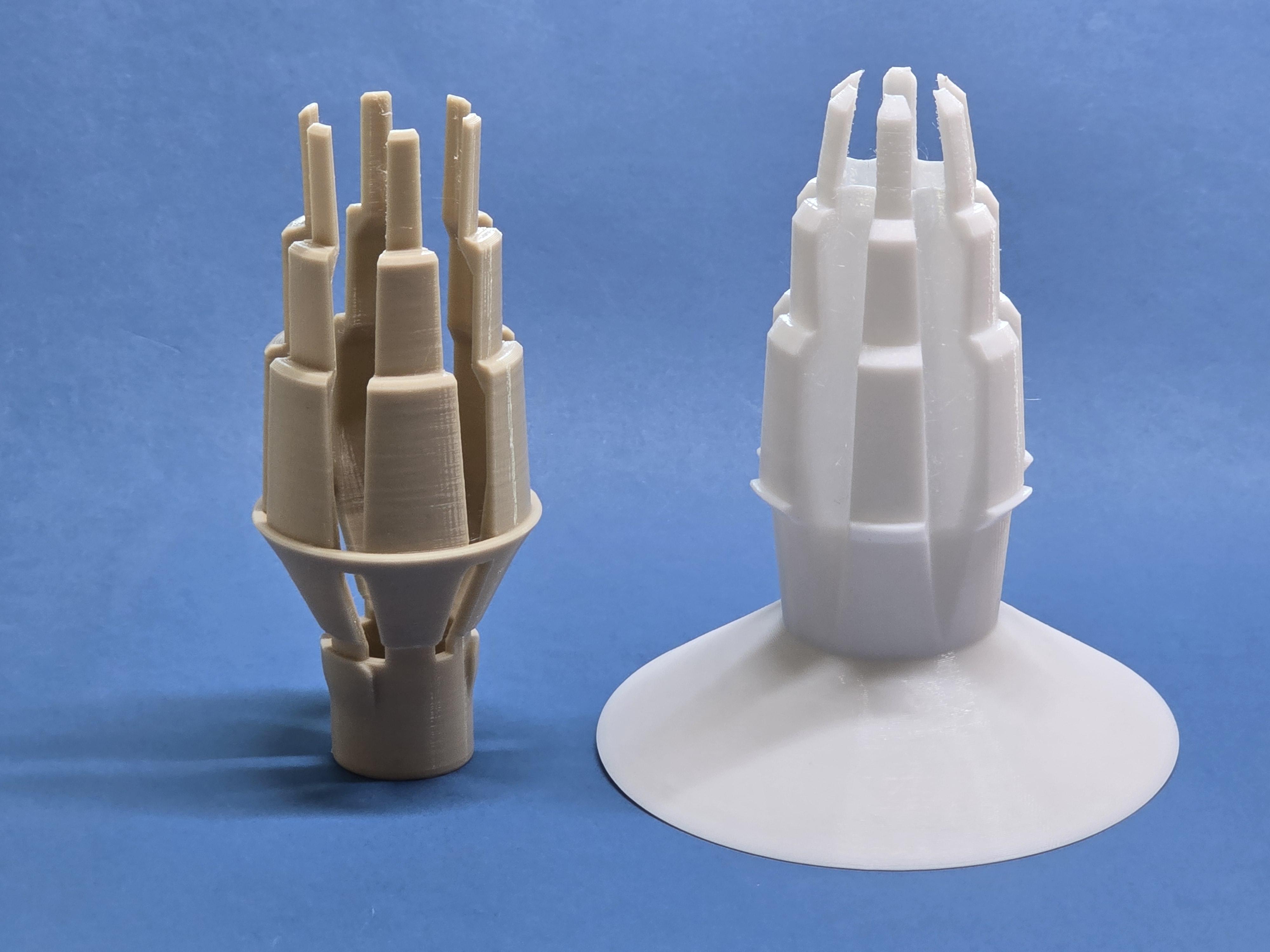 - Phễu dưới: PET-G là lý tưởng vì tính linh hoạt và khả năng kháng hóa chất.