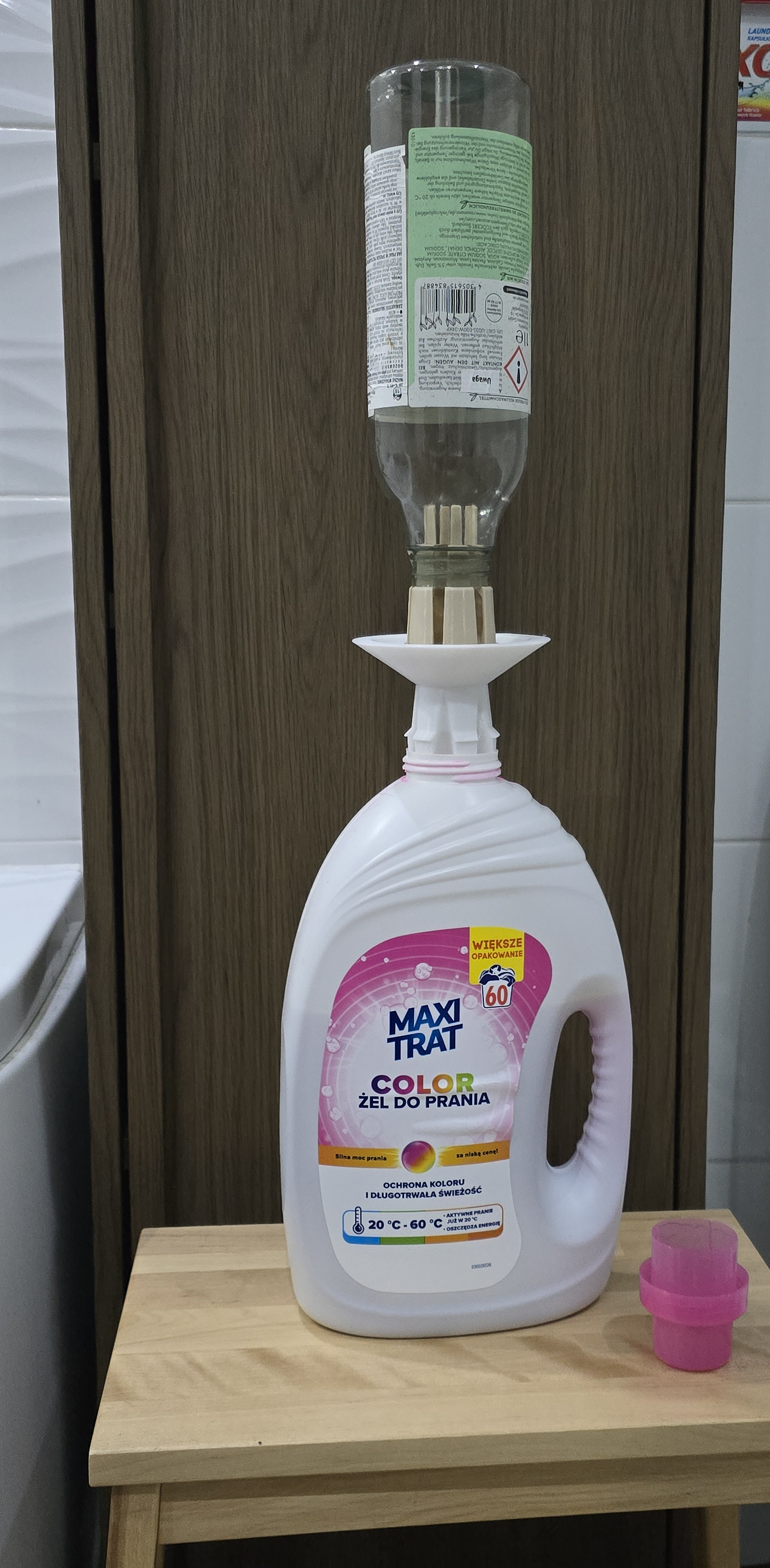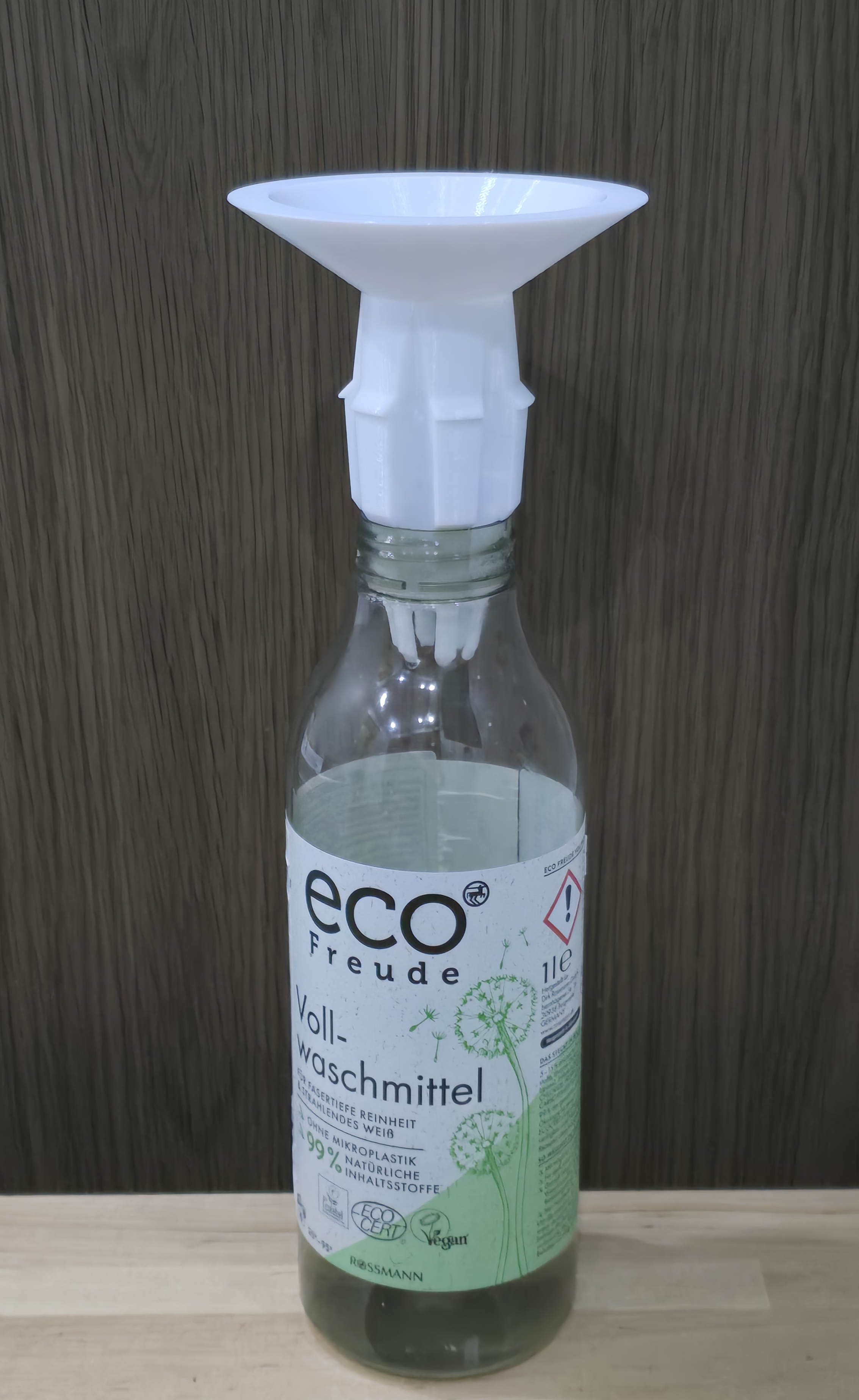 Tôi đã hơi nới rộng phần đầu lớn của phần kẹp linh hoạt ở cả hai nửa để nó vừa với chai Perwoll hơn.