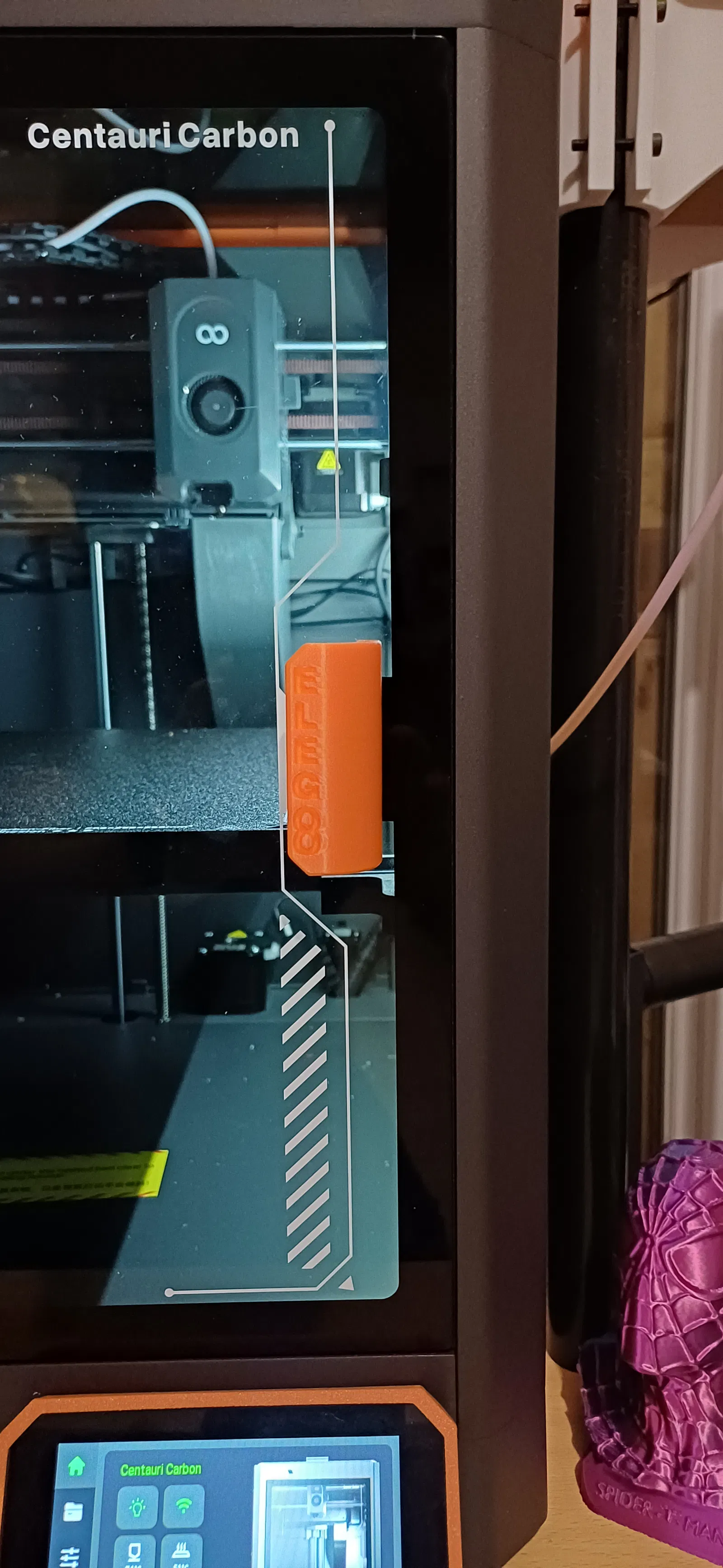 Thay thế tay nắm cửa zin cho máy in 3D Elegoo Centauri Carbon. Tay nắm này được làm sâu hơn một chút so với bản gốc, giúp bạn cầm nắm dễ dàng hơn. Sản phẩm được in bằng vật liệu PLA+ màu cam, sử dụng đầu phun 0.4mm với cài đặt 0.20mm trong Elegoo slicer và tương thích với ốc zin của máy.
