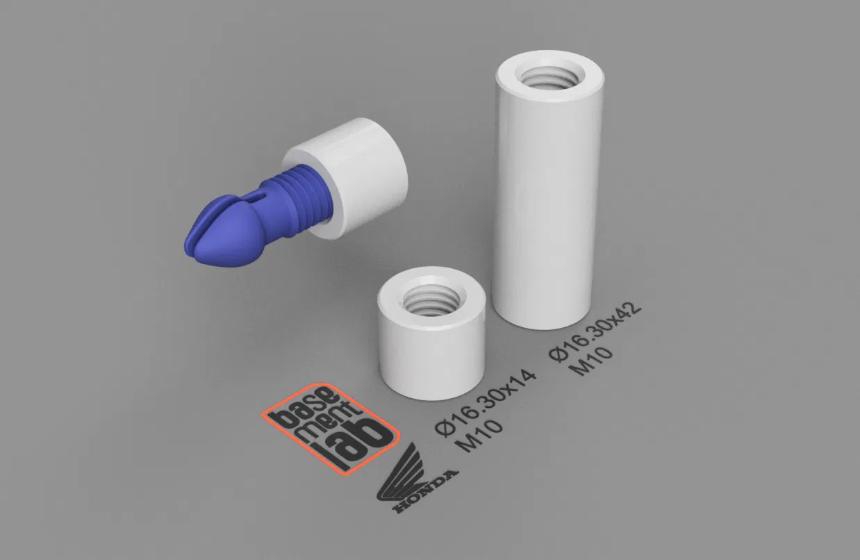 Ốc Vặn / Đệm Tán cho Pát Chắn Gió xe Honda Transalp 650 với ren M10, có các tùy chọn độ dài từ 14mm đến 42mm. Đây là phụ tùng thay thế hoặc độ chế hữu ích cho xe của bạn. Có thể tùy chỉnh kích thước bằng lệnh Scale/Resize. Chia sẻ miễn phí và rất mong nhận được sự ủng hộ của anh em.