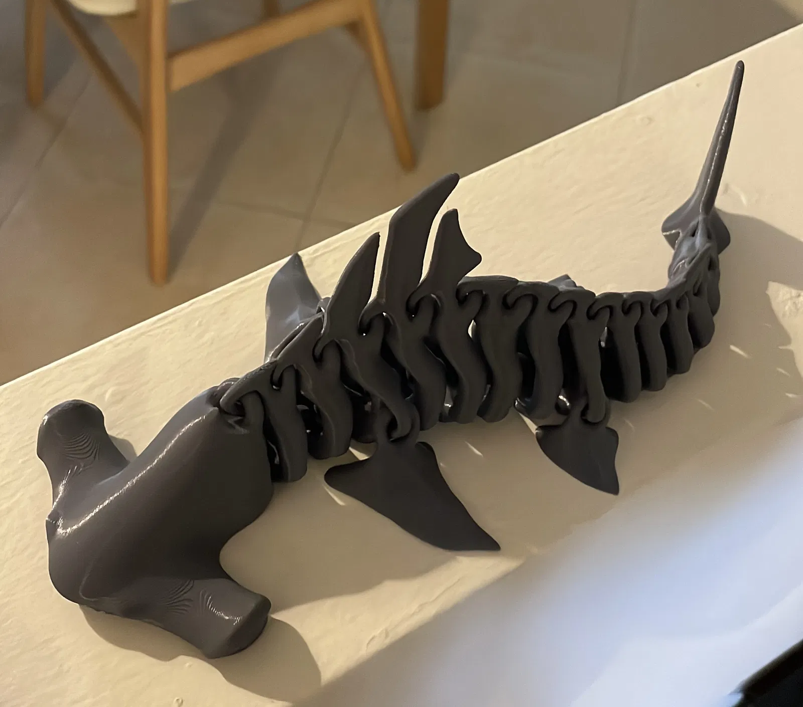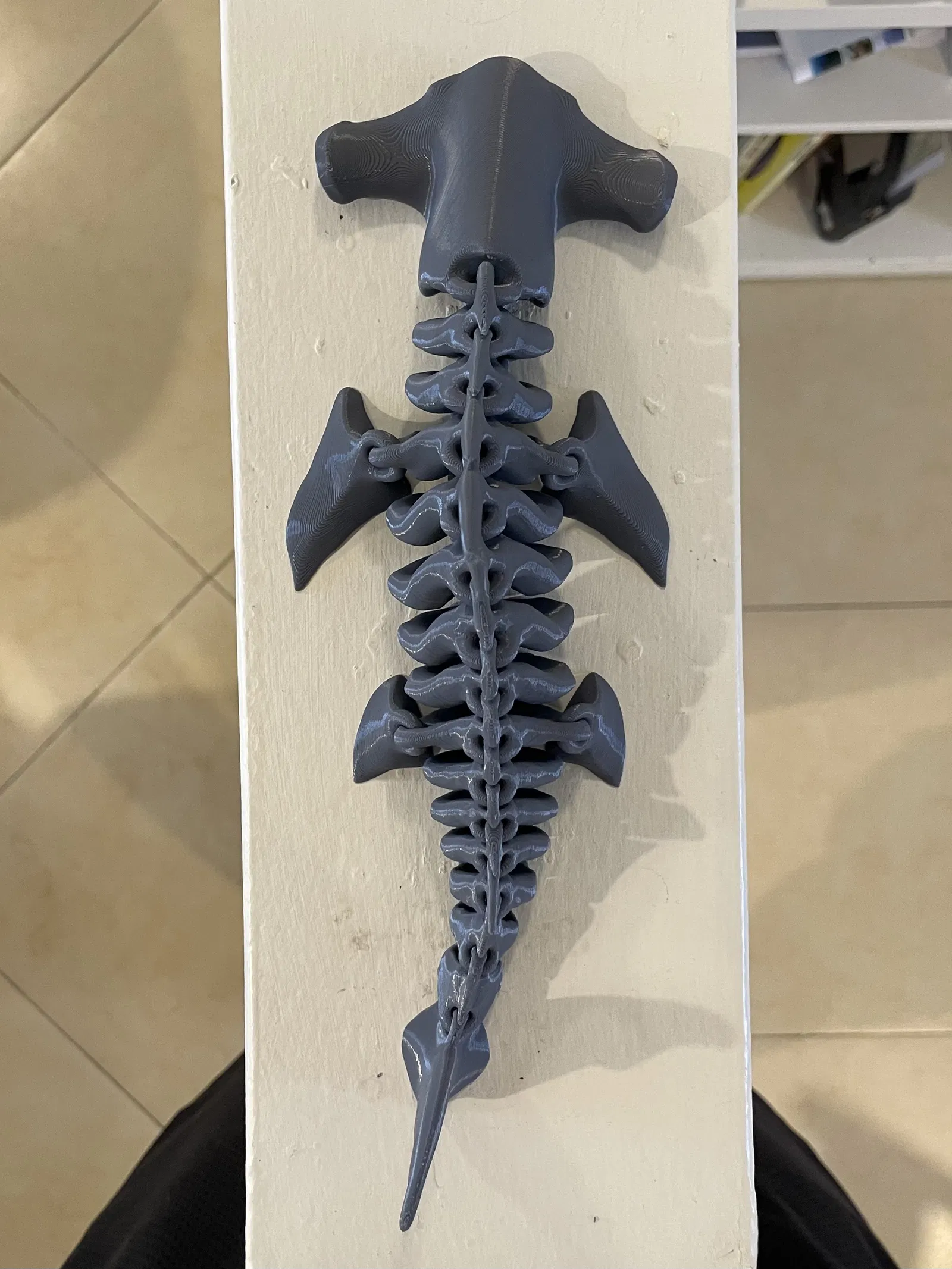 Giống y chang mẫu Cá Mập Đầu Búa bình thường, mà chỉ có bộ xương thôi nha mấy chế :) Mẫu này in nguyên khối không cần ráp, chỉ cần slice và in. Nhớ đừng in nhỏ quá 50% kích thước gốc nha mấy fen.