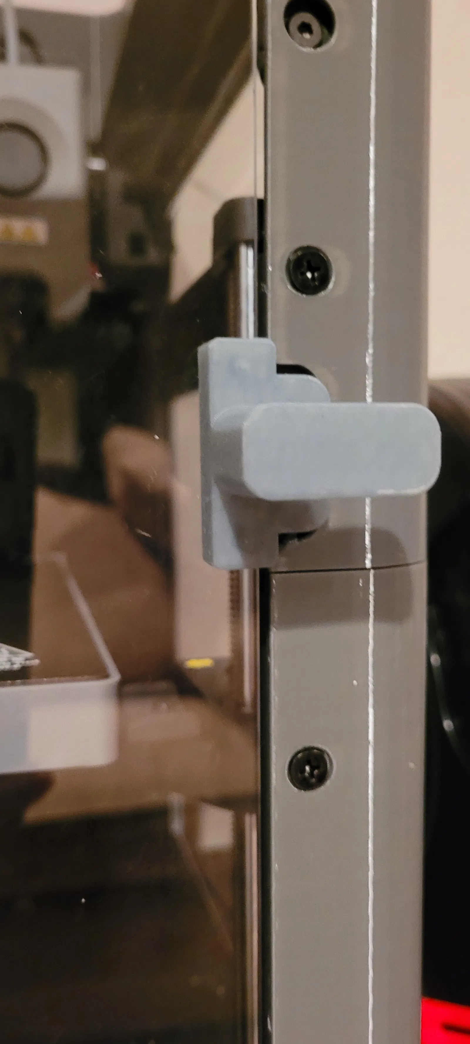 In tay nắm low poly và tay nắm tròn trên khe mở tay nắm với một ít support ở bộ phận nam châm. Núm vặn có vân (knurled knob) cũng nên in ngược với một ít support ở bộ phận nam châm.