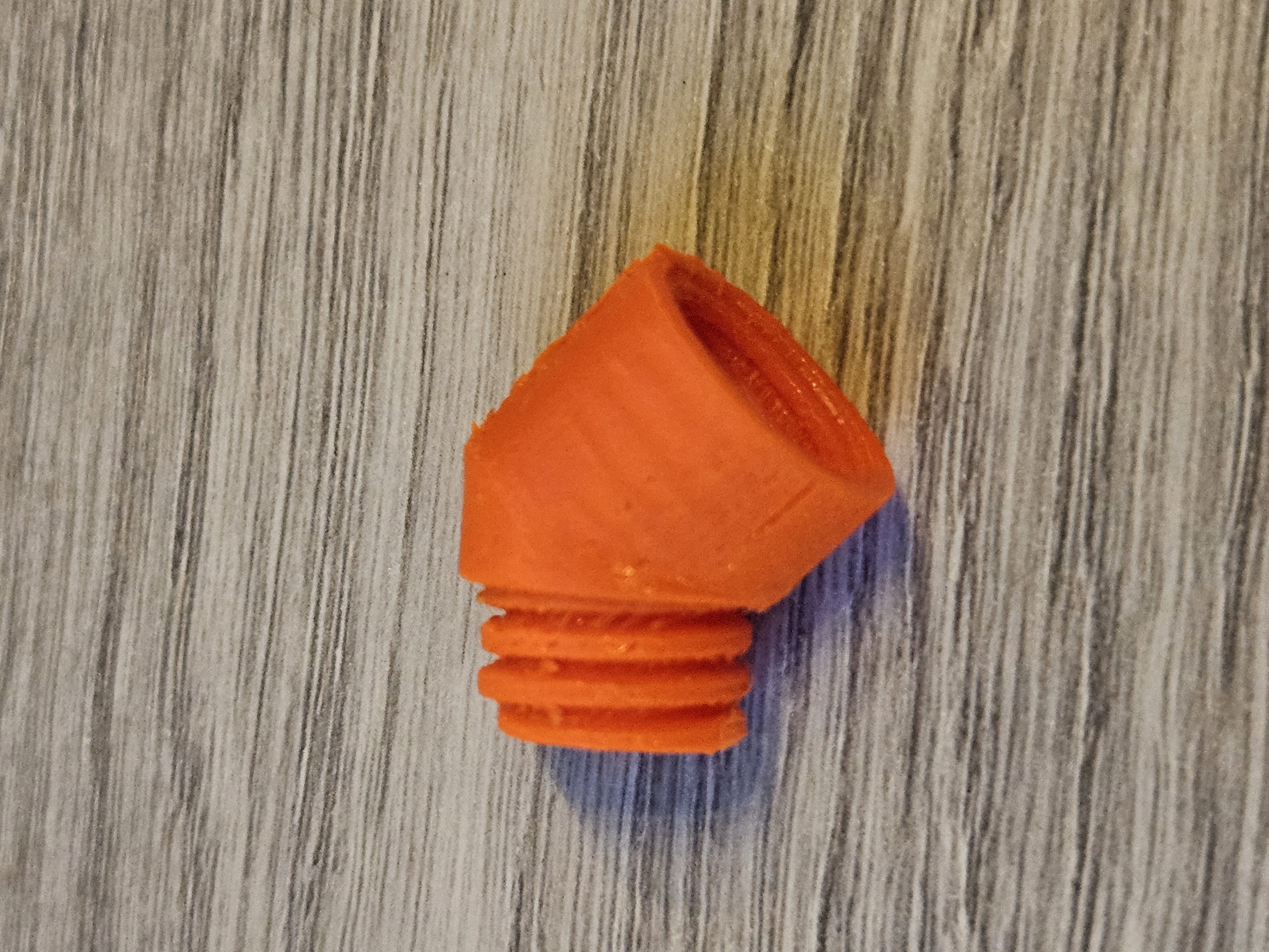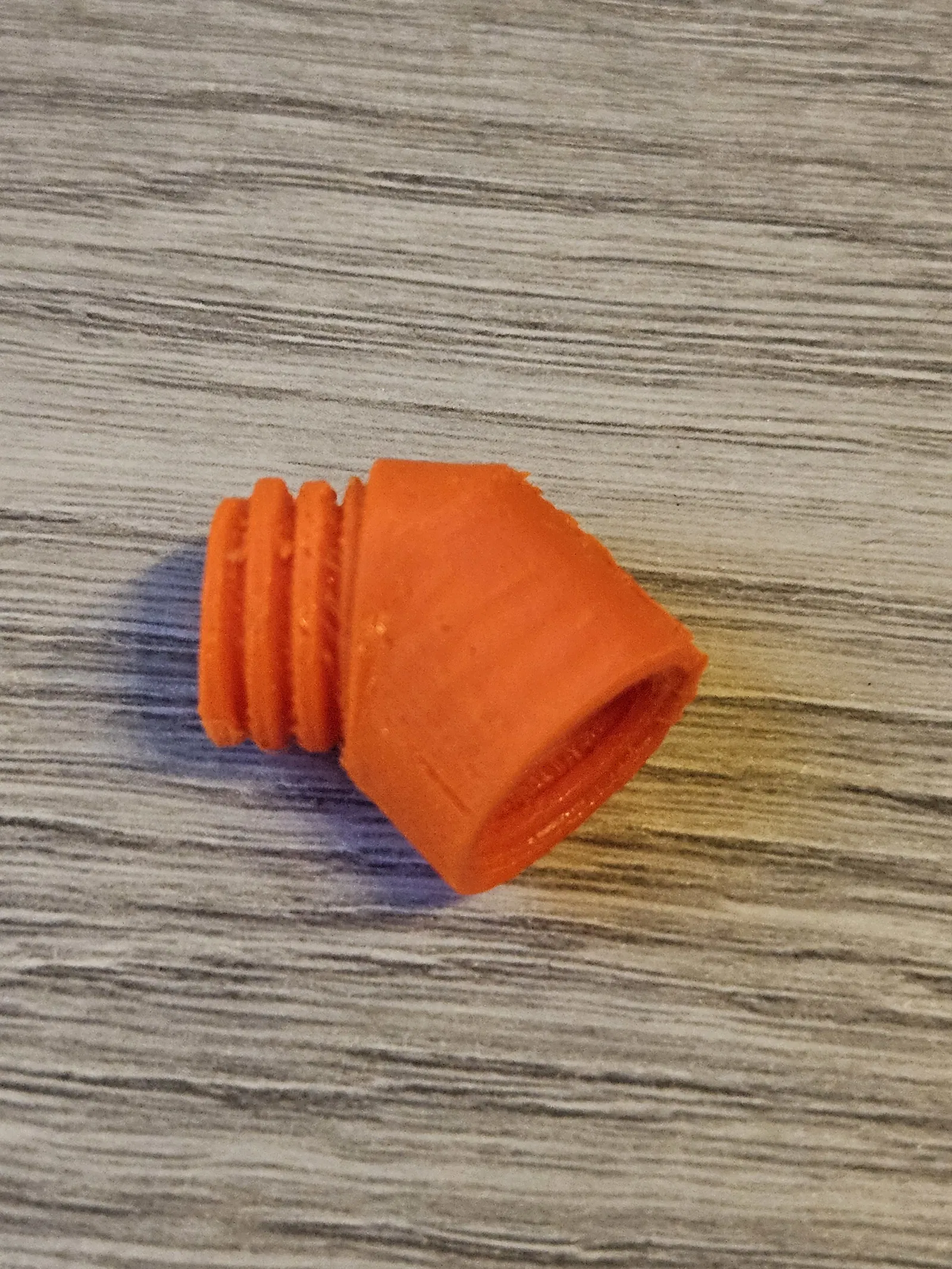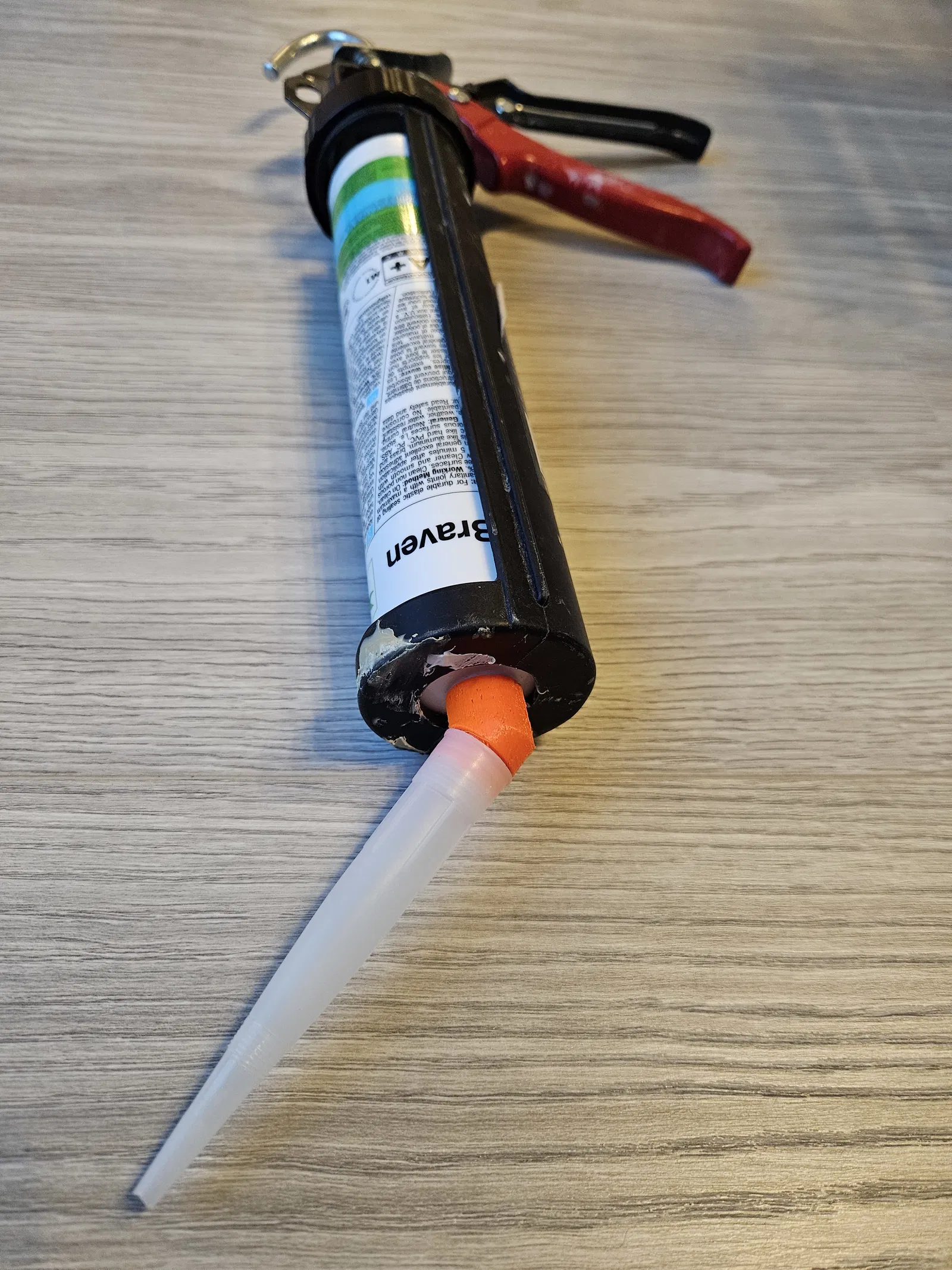 Trong góc hẹp, súng bắn keo có thể bị vướng. Góc 135 độ này có thể được vặn vào giữa ống keo/silicone và đầu phun. Đã thử nghiệm với các ống keo của Bison, Den Braven và Pattex.