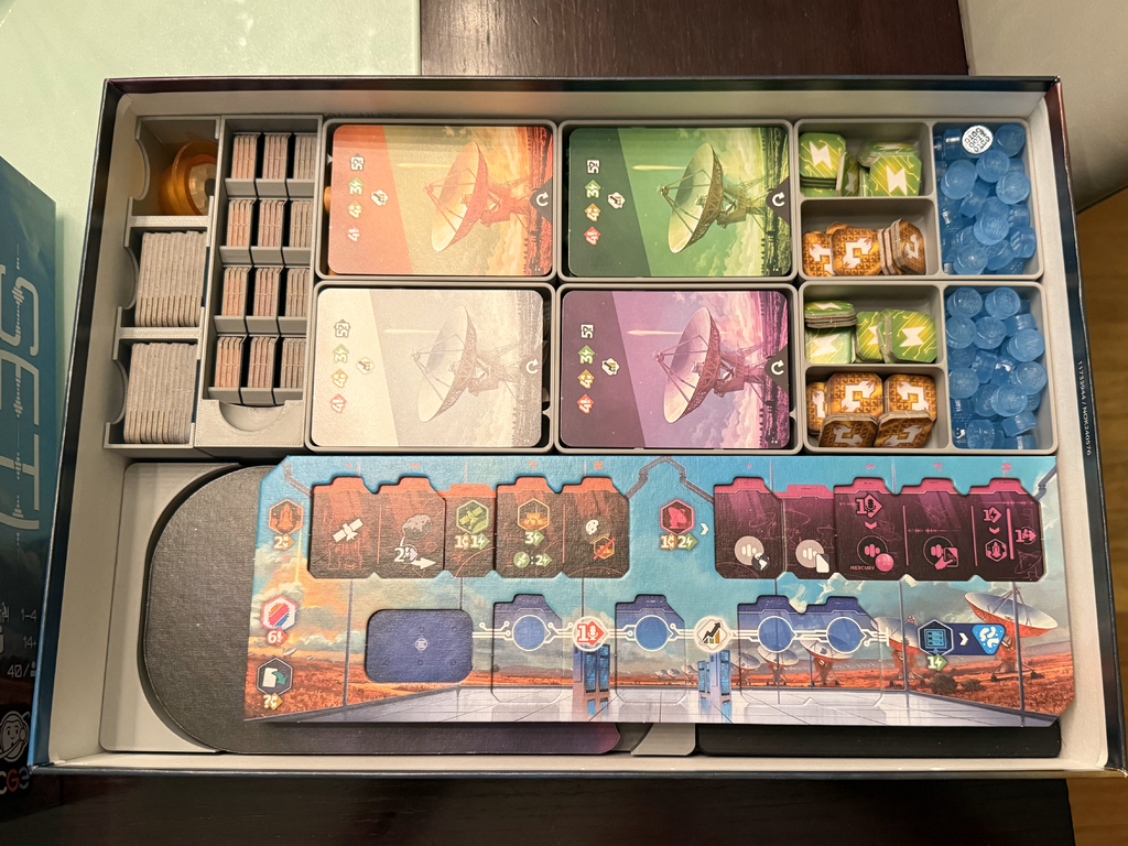 Bộ organizer hoàn chỉnh cho board game SETI của Czech Games Edition, bao gồm các khay riêng biệt cho từng người chơi và các loài. Giúp sắp xếp gọn gàng token, thẻ bài, và các mảnh ghép. Có tùy chọn làm sáng đèn LED cho mặt trời.