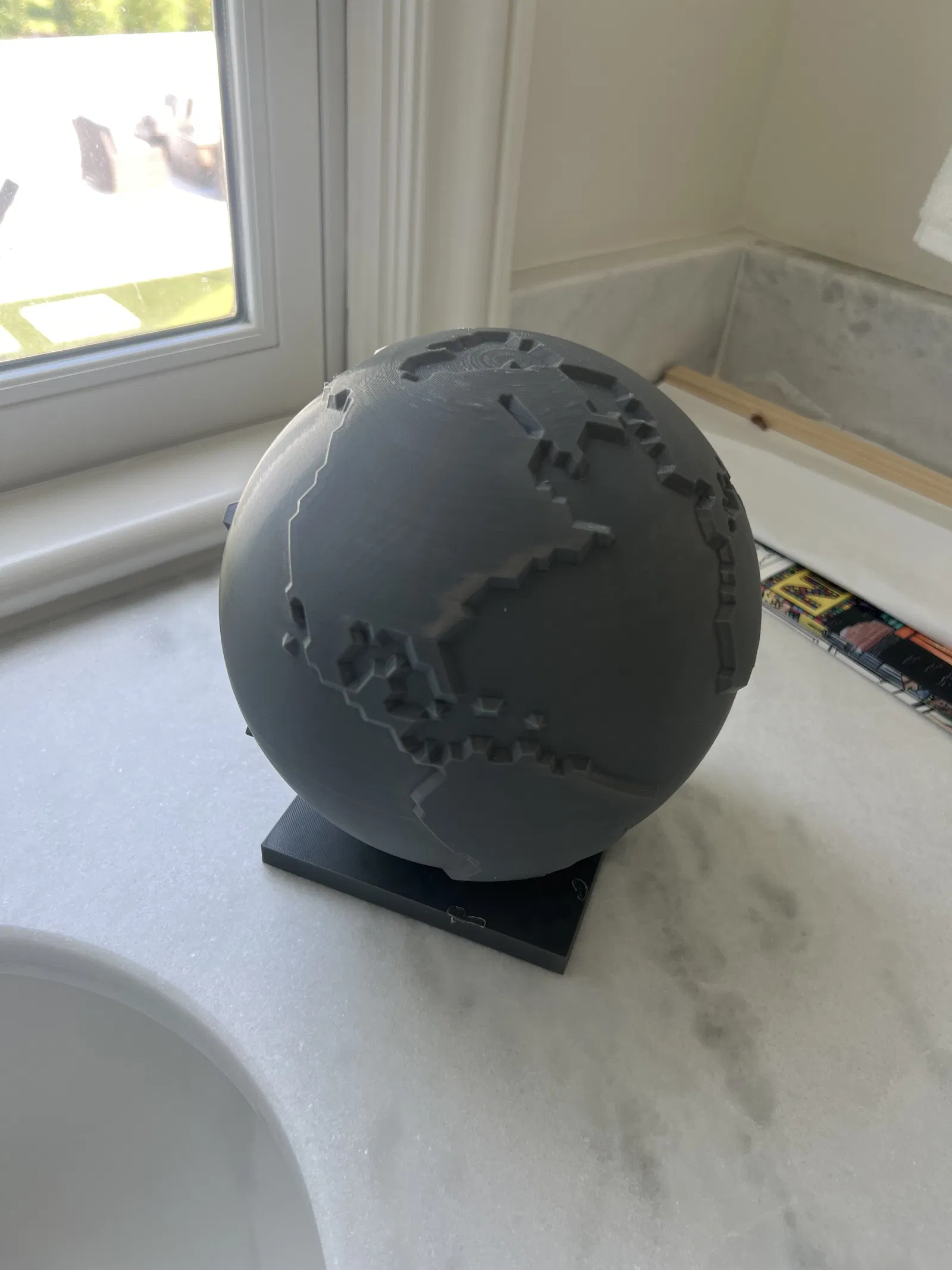 Khám phá mô hình địa cầu 3D độc đáo với các lục địa nổi, mang lại cảm giác xúc giác và thị giác chân thực về địa lý Trái Đất. Hoàn hảo cho giáo dục, trang trí, dự án không gian và hơn thế nữa. In dễ dàng trên nhiều máy in 3D FDM.