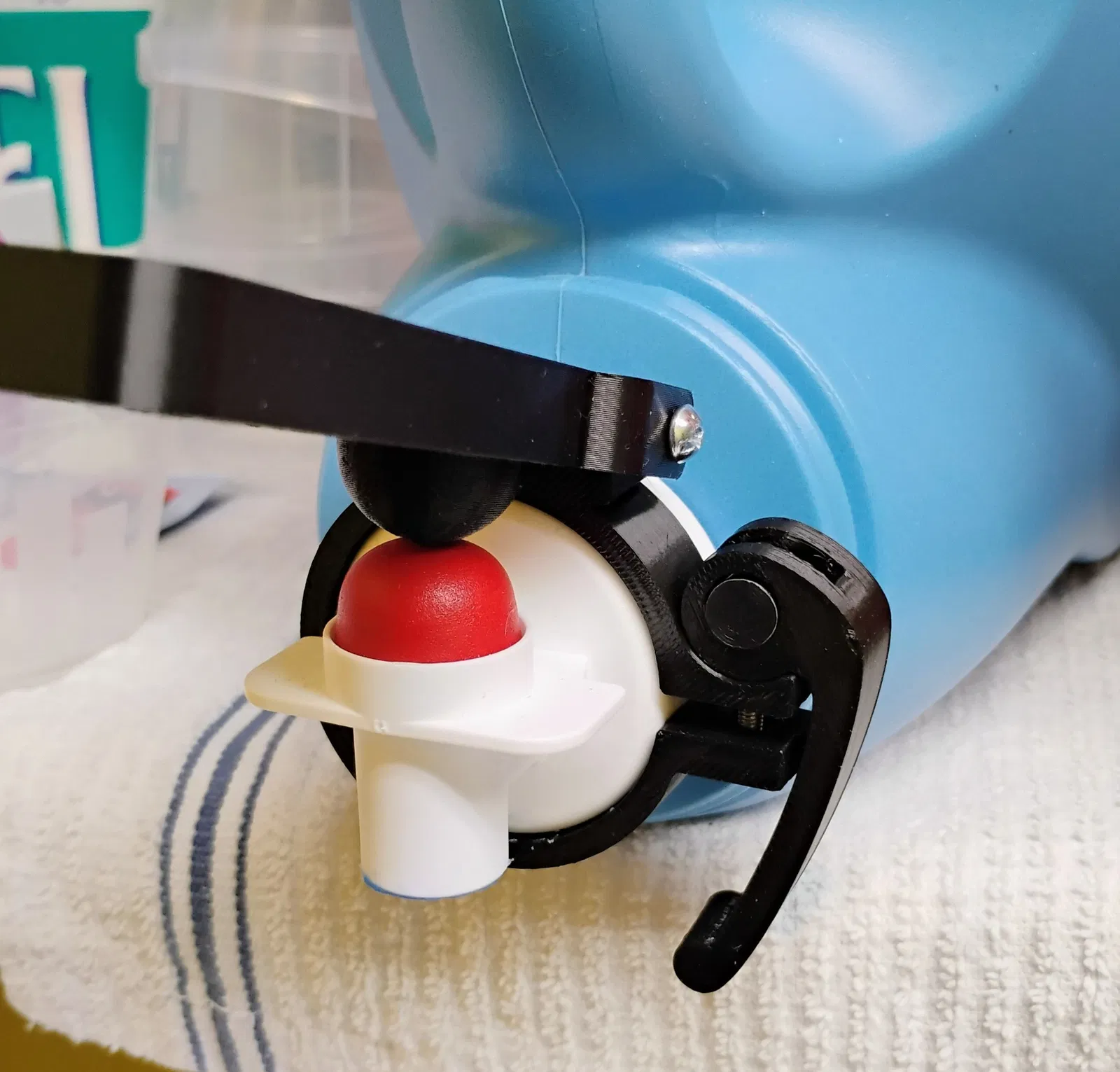 Tôi nghĩ cái nút nhỏ trên vòi của các chai nước giặt rất khó bấm, và ý tưởng này thật tuyệt vời. Nhiều người bị viêm khớp, và thấy các vật dụng thông thường khó sử dụng hơn những vật khác. Lấy cảm hứng từ điều này, tôi đã thiết kế lại nó. Tôi đã dựng lại từ đầu, sử dụng một số số đo trước đó.