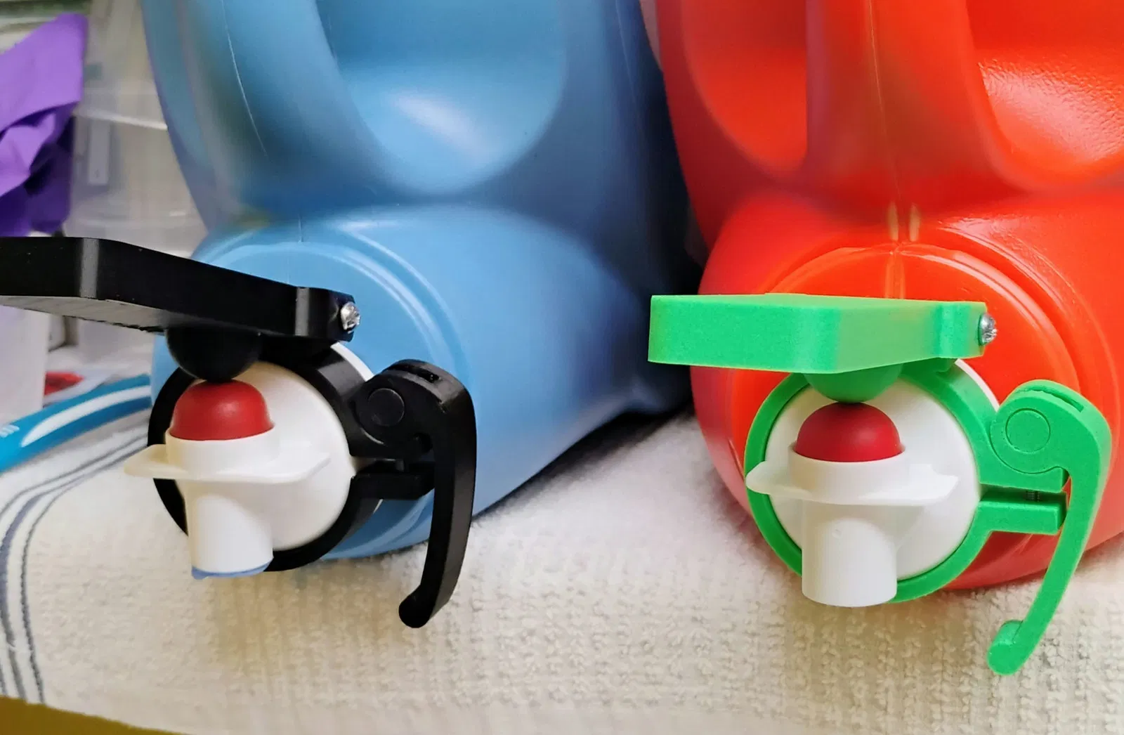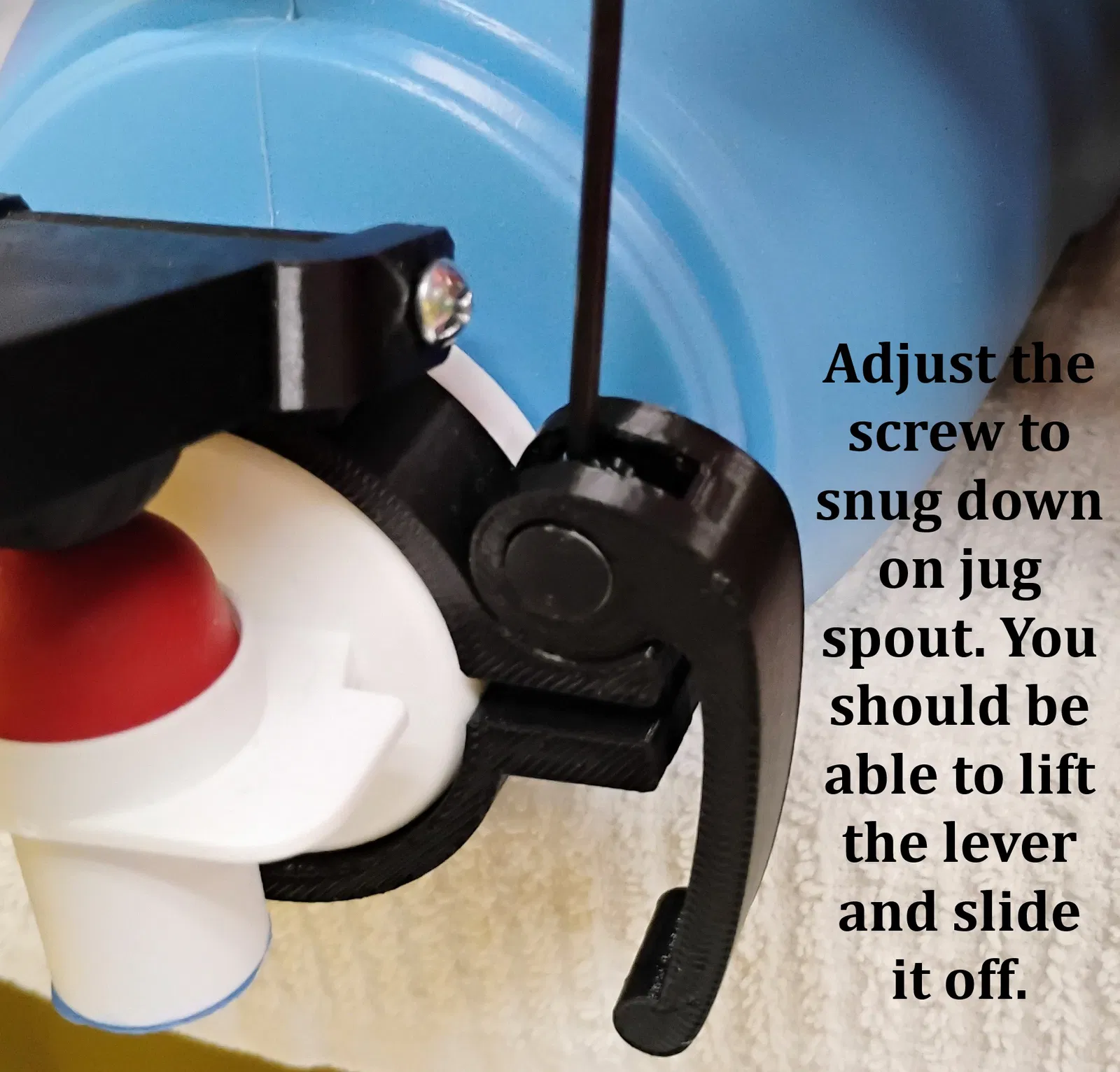 Cần gạt chai nước giặt này là bản tái thiết kế, giúp người bị viêm khớp hoặc hạn chế vận động tay dễ dàng bấm nút chai nước giặt và làm mềm vải. Thiết kế mới sử dụng cần khóa, loại bỏ nhu cầu dùng dụng cụ khi đổi chai. Chỉ cần điều chỉnh độ chặt vừa khít, bạn có thể dễ dàng sử dụng cho nhiều loại chai khác nhau.