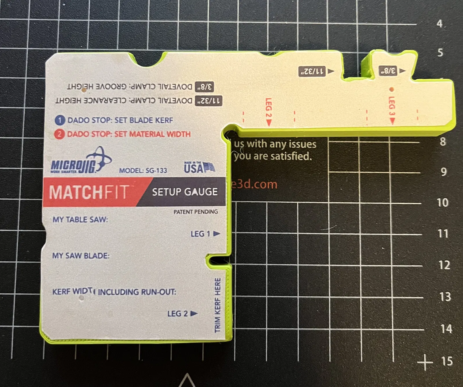Mẫu jig **MatchFit Setup Gauge** này giúp bạn dễ dàng căn chỉnh lưỡi cưa. Chỉ cần hai viên nam châm 6mm x 3mm là gắn được vào mặt bàn cưa. Tải bản PDF về, in ở 75% và dán lên là xong!