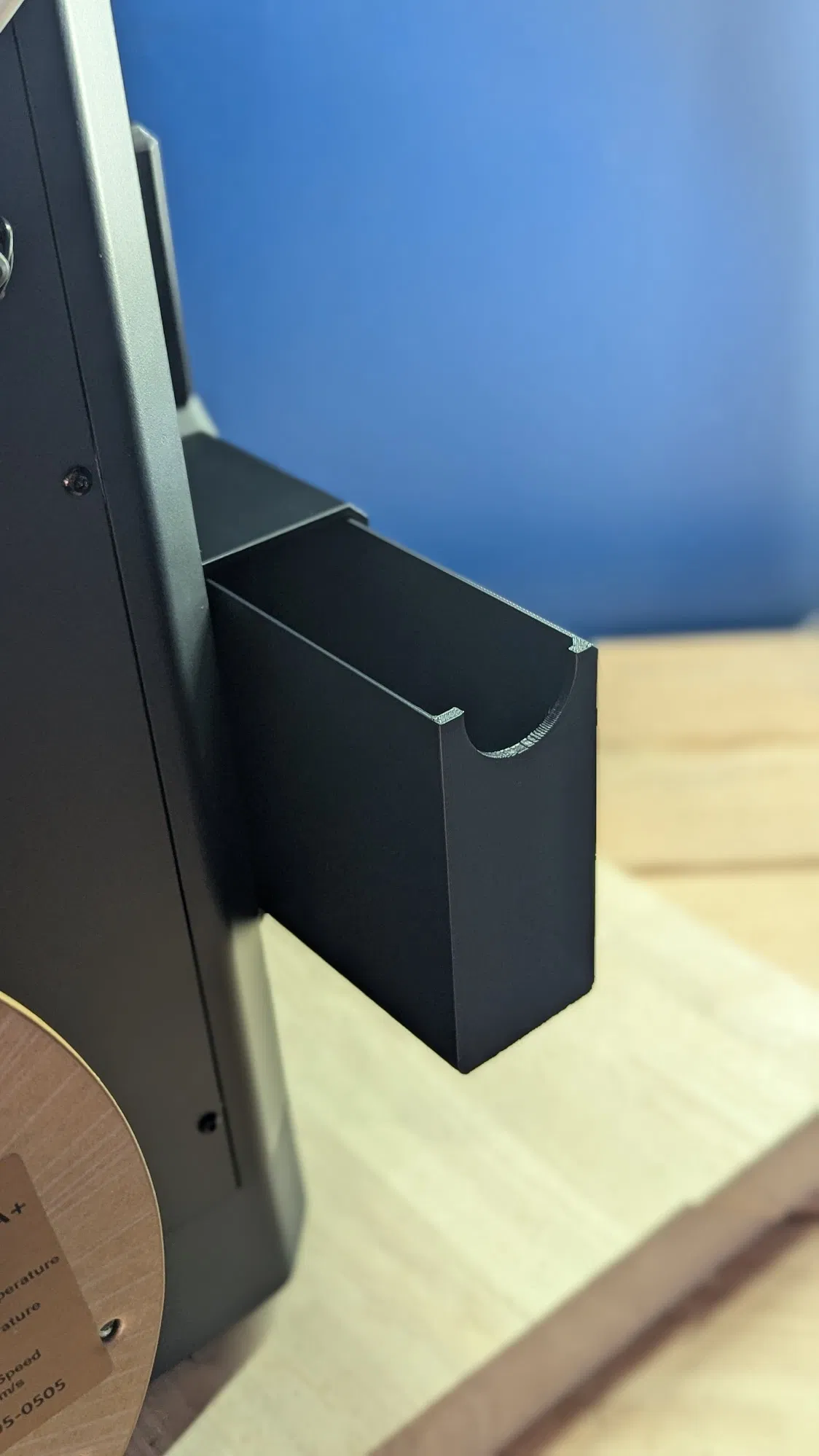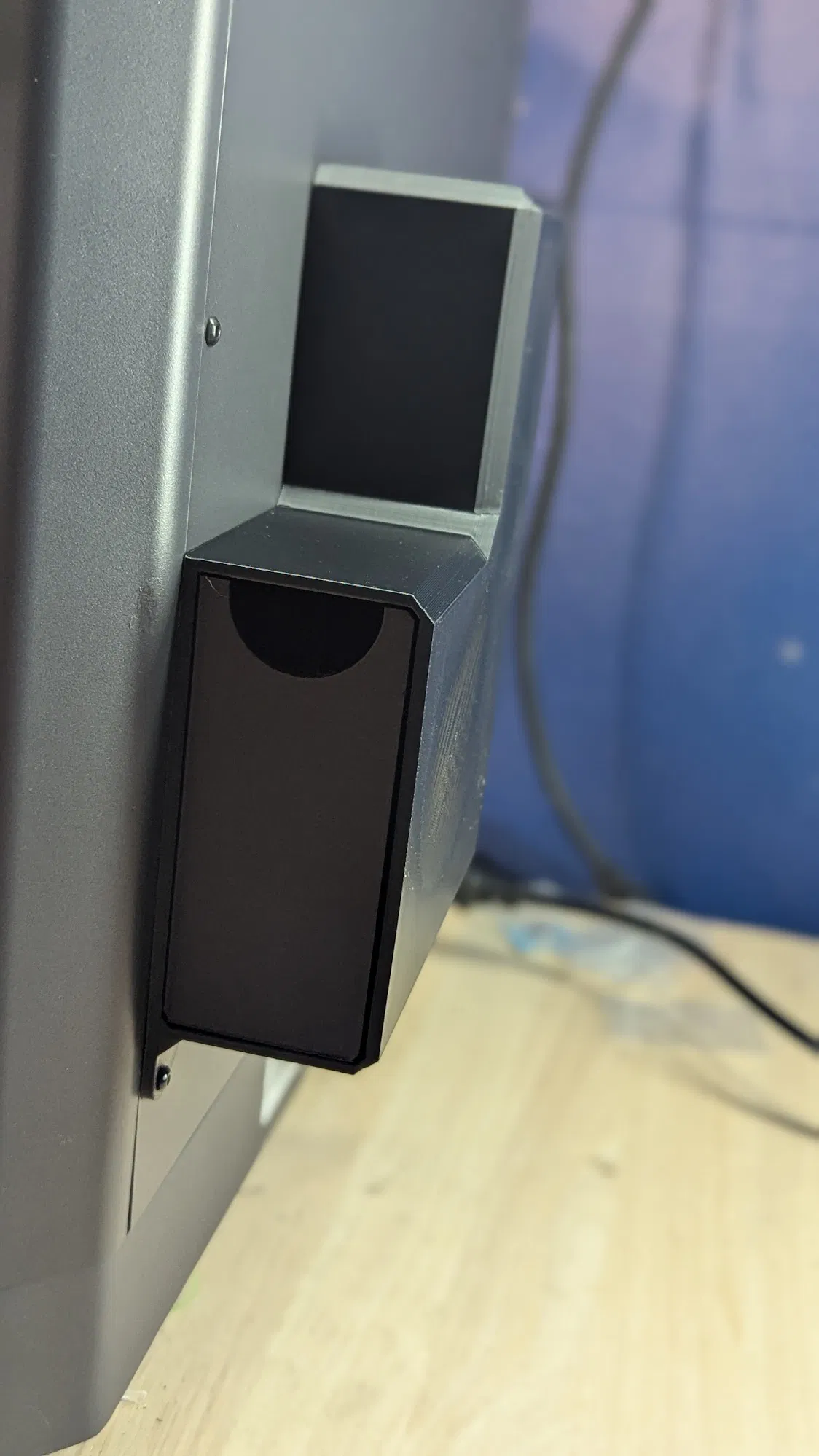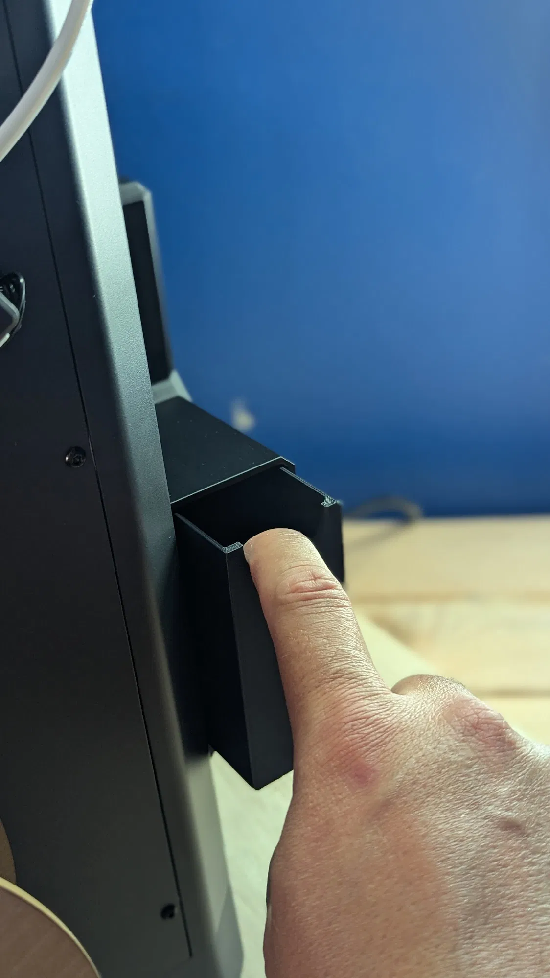 Tui đã chỉnh sửa lại thiết kế ngăn kéo gốc, loại bỏ tay nắm và thay bằng lỗ xỏ ngón tay đơn giản. Việc này giúp in dễ hơn, tiết kiệm vật liệu hơn và không cần dùng tới support.