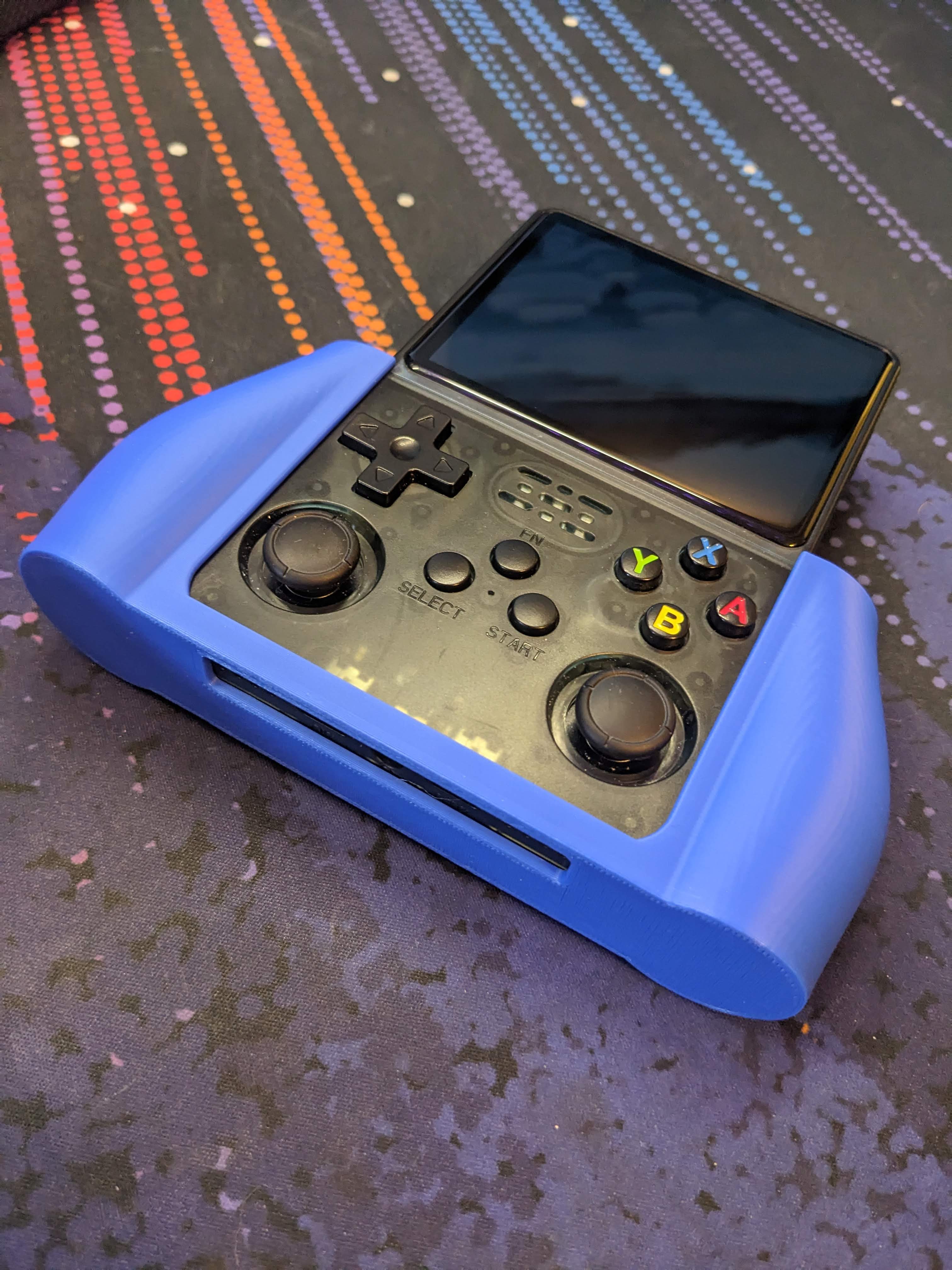 Tay cầm đơn giản cho R36S cầm tay. Có thể in đứng mà không cần support, tui đã in ở độ cao lớp .2mm. Chừa khe cho cổng tai nghe và cổng USB, và không chạm tới các khe cắm thẻ SD. Tuy nhiên có che khoang pin lại.