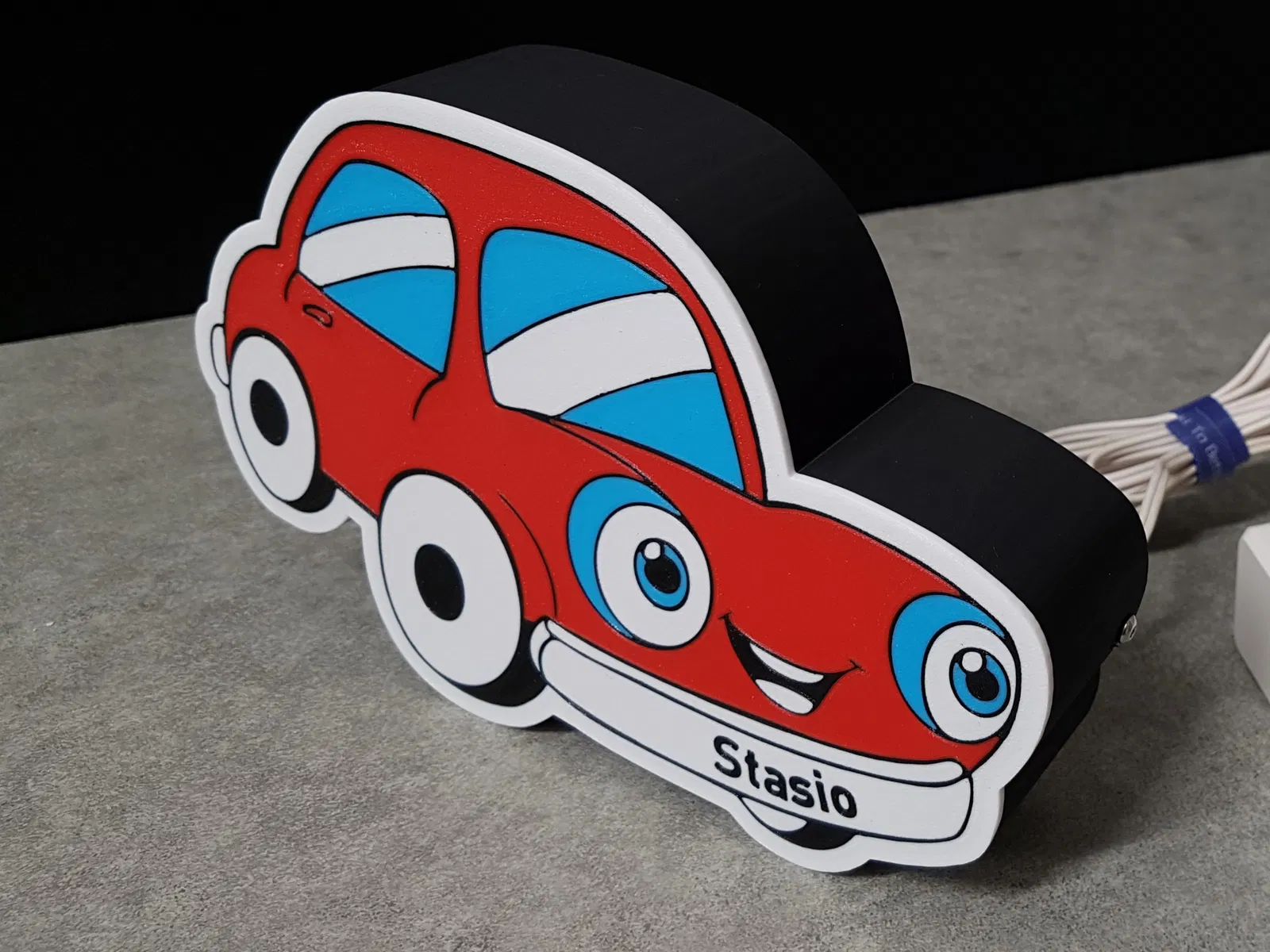 Hộp đèn xe hơi kiêm đèn ngủ cho bé. In tên bé cùng màu với nền để tạo hiệu ứng tàng hình độc đáo. Sản phẩm được thiết kế tối ưu cho máy in Bambu Lab với bộ AMS, mang đến trải nghiệm in ấn thú vị và kết quả đẹp mắt cho phòng của bé.