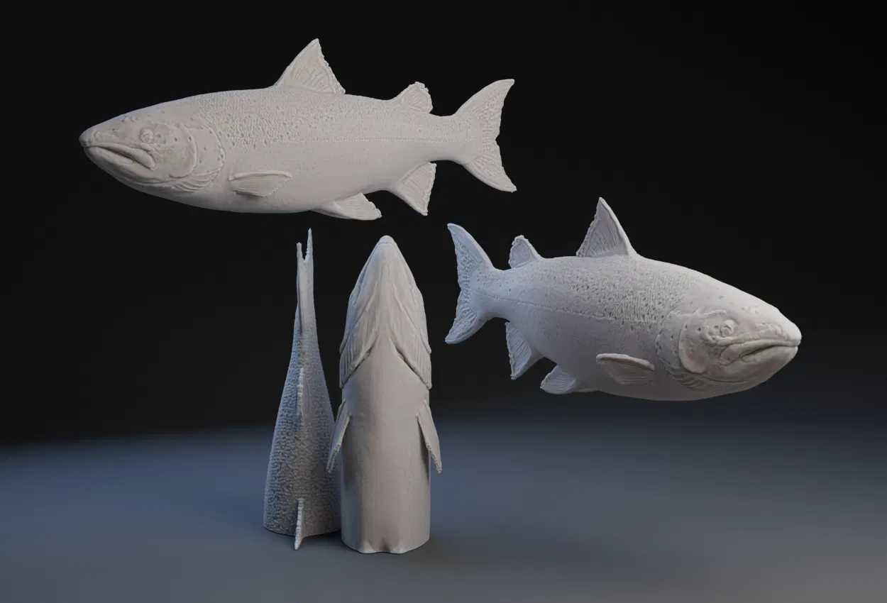 Mô hình 3D chi tiết của một con cá hồi, được thiết kế để in 3D. Hoàn hảo cho các nhà sưu tập hoặc những người yêu thích sinh vật biển.