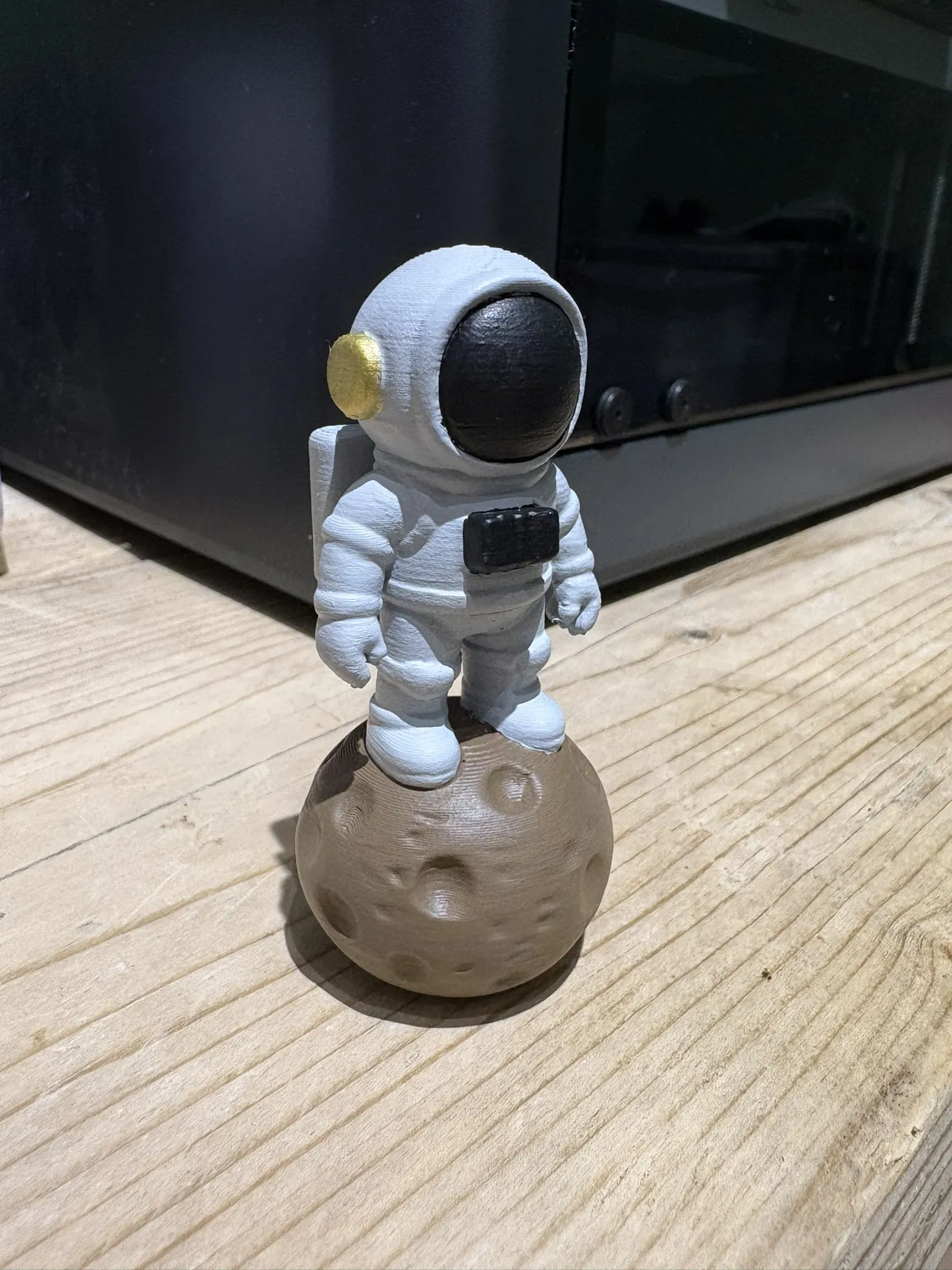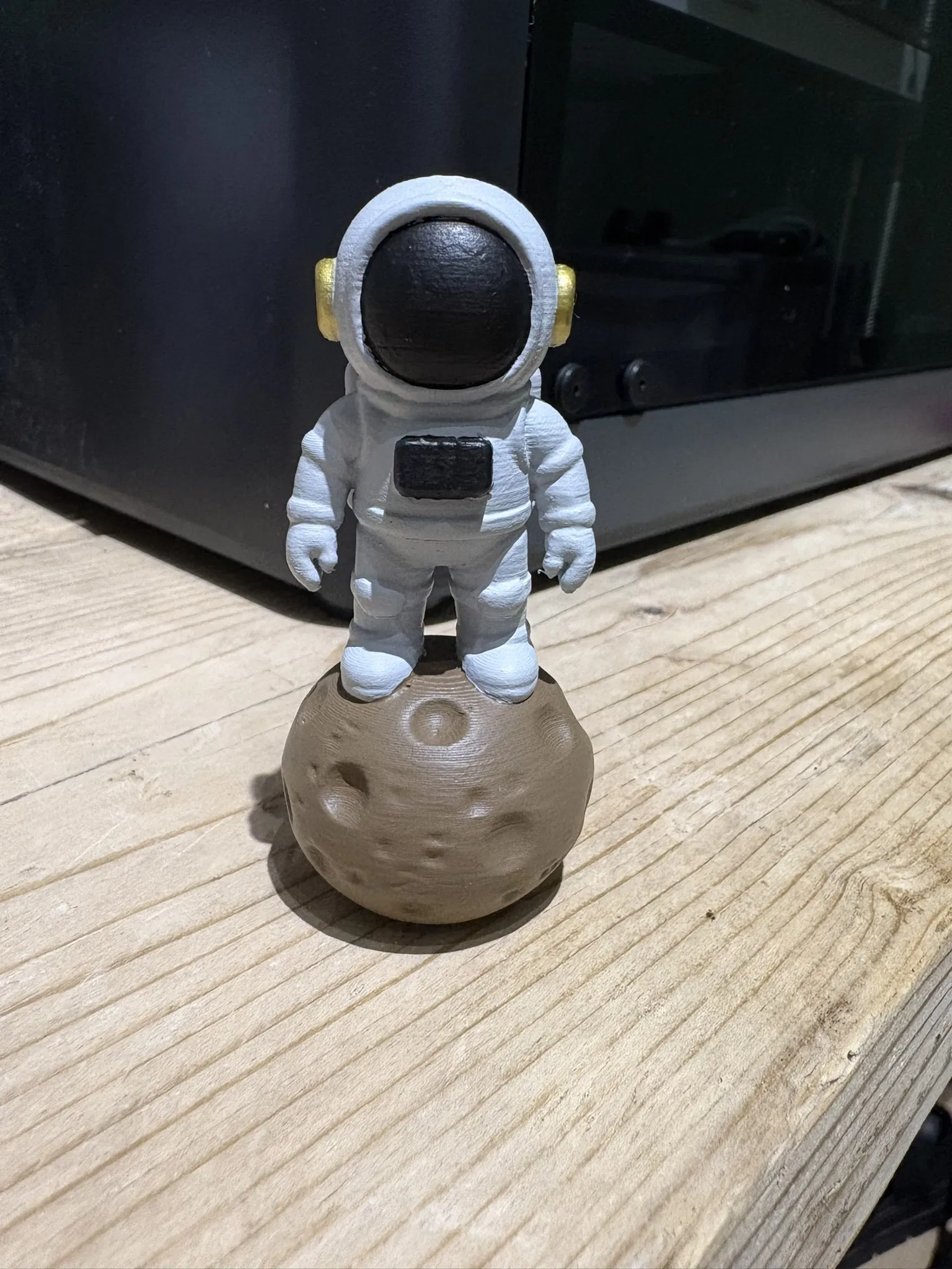 Mô hình phi hành gia vũ trụ được in đẹp mắt, ngồi trên một tảng đá trông rất ngộ nghĩnh. Mô hình này hoàn hảo cho những ai yêu thích không gian và đồ chơi nhỏ xinh.