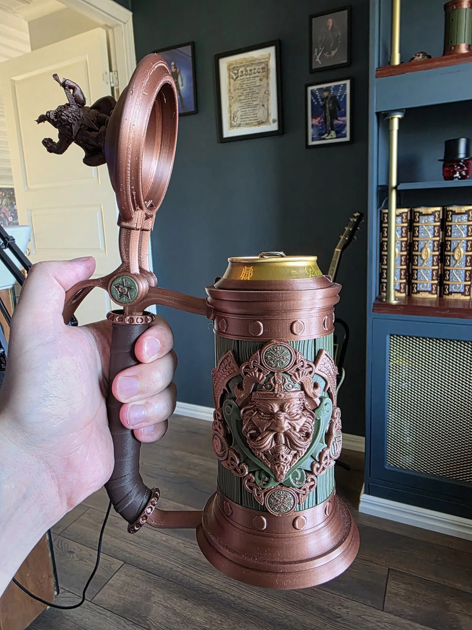 Tạo cốc bia (can stein) để giữ lon 33cl và 50cl. Có cả loại lon rộng và lon hẹp đang phổ biến ở châu Âu. Cốc có cơ chế khóa lon và bộ phận chèn để điều chỉnh cho các kích cỡ lon khác nhau, chỉ cần vít M3 và keo để lắp ráp.