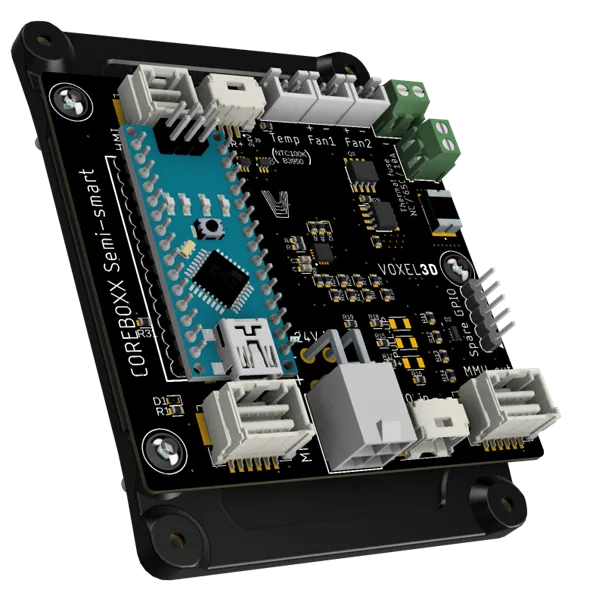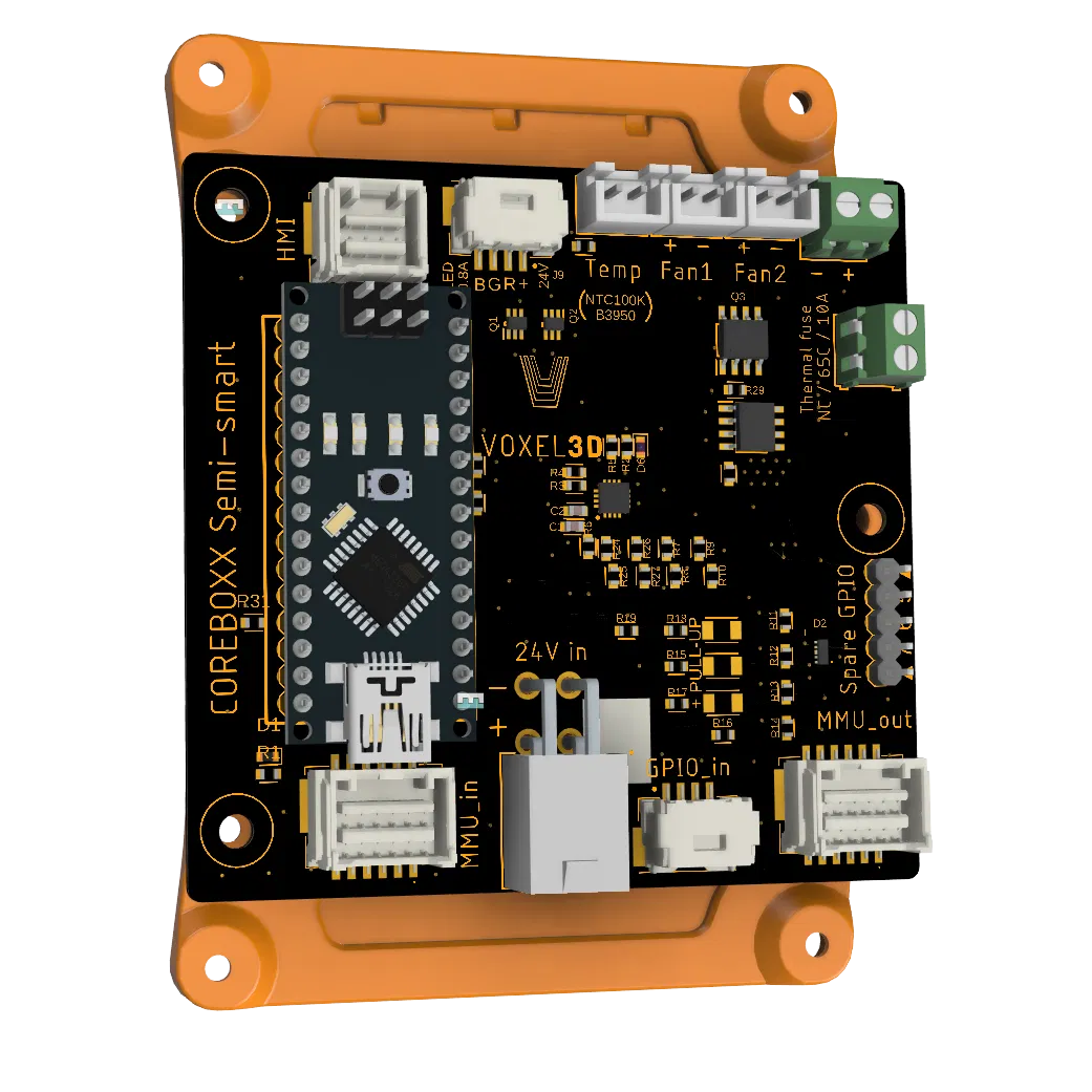 Bộ nâng cấp điện tử COREBOXX Heated Semi-smart với sưởi ấm, giám sát nhiệt độ & độ ẩm, màn hình OLED, điều khiển RGB LED. Thiết kế mô-đun dễ lắp ráp, tối ưu hóa quy trình in 3D của bạn. Có sẵn bộ kit toàn cầu.