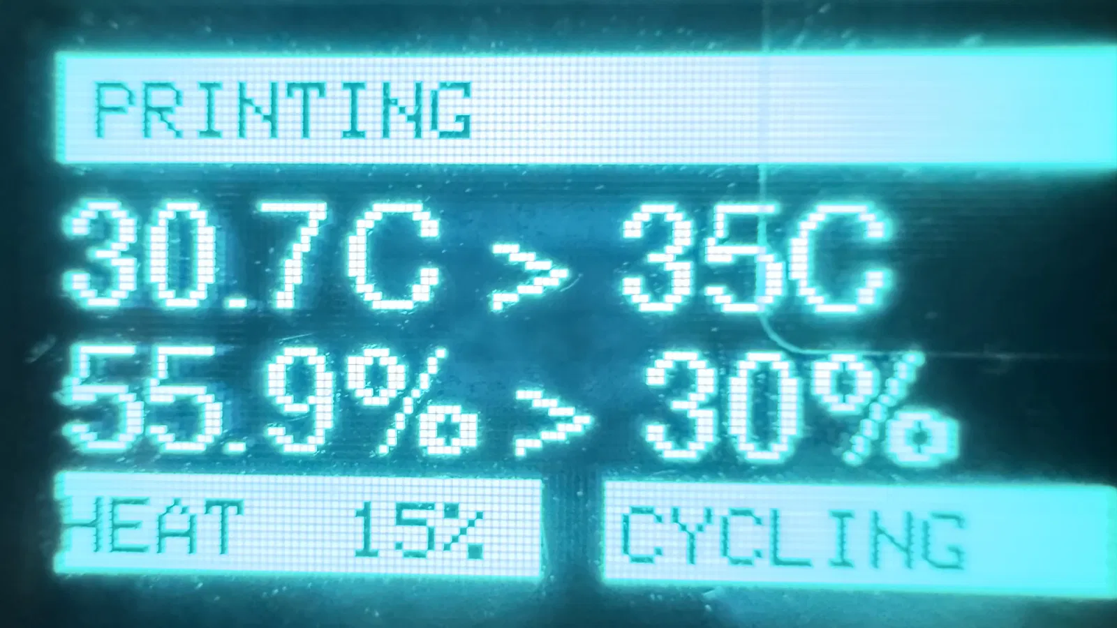 - Bắt đầu in: TẮT/CHỜ → BẬT (thiết lập DRY_MODE_BY_HUM).