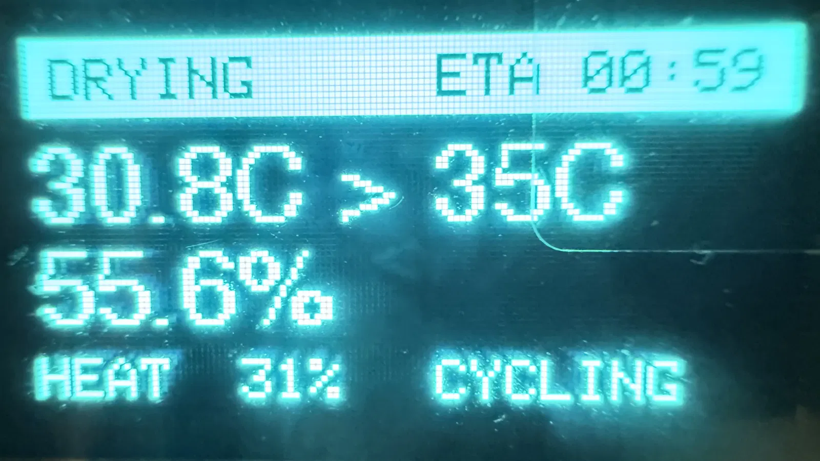 - Bắt đầu in: Bật hệ thống, thiết lập DRY_MODE_BY_HUM.