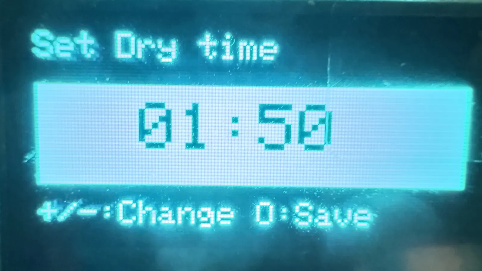 - DRY_TIME: Thiết lập thời gian sấy khô (chỉ chế độ THEO THỜI GIAN).