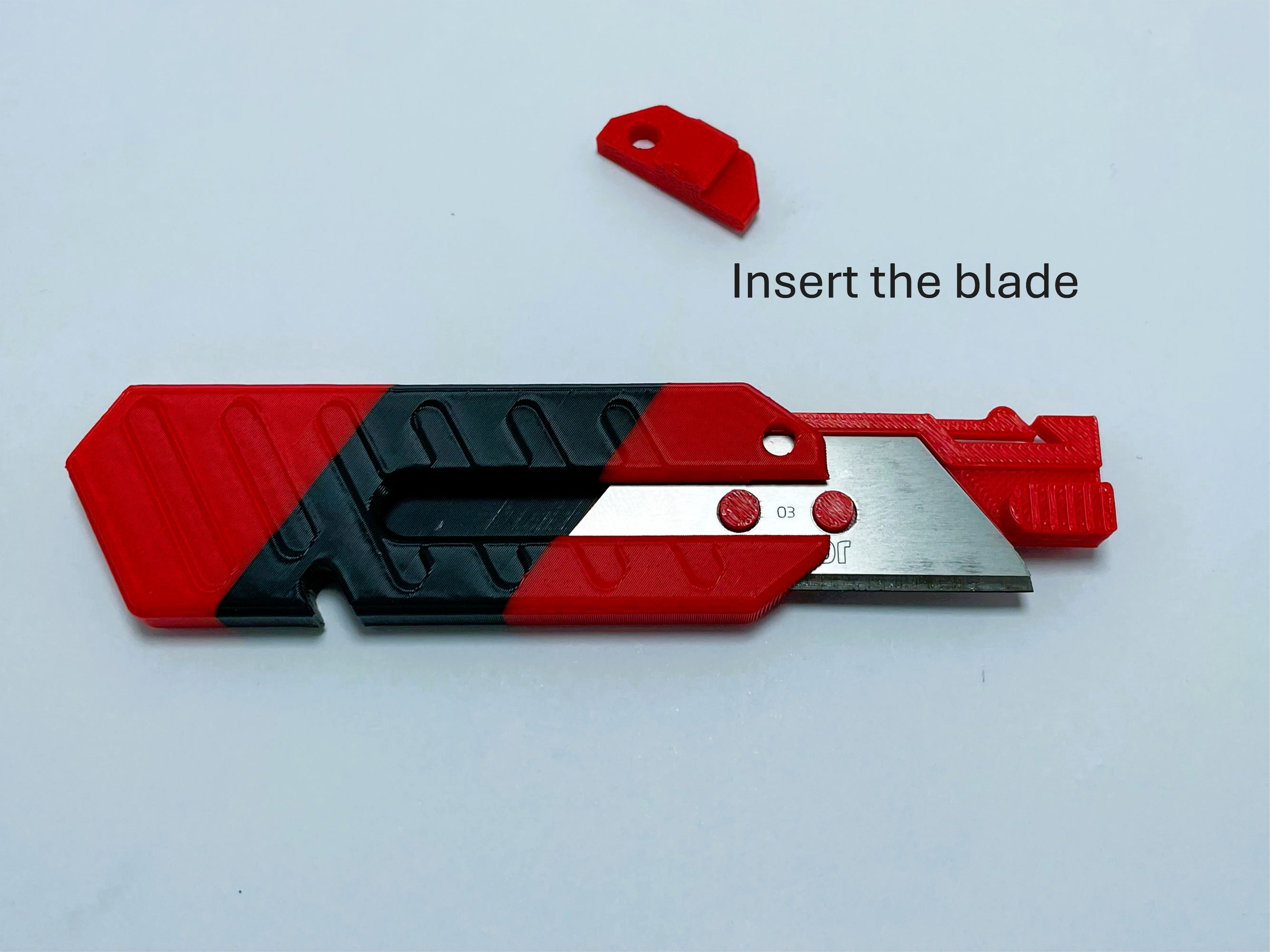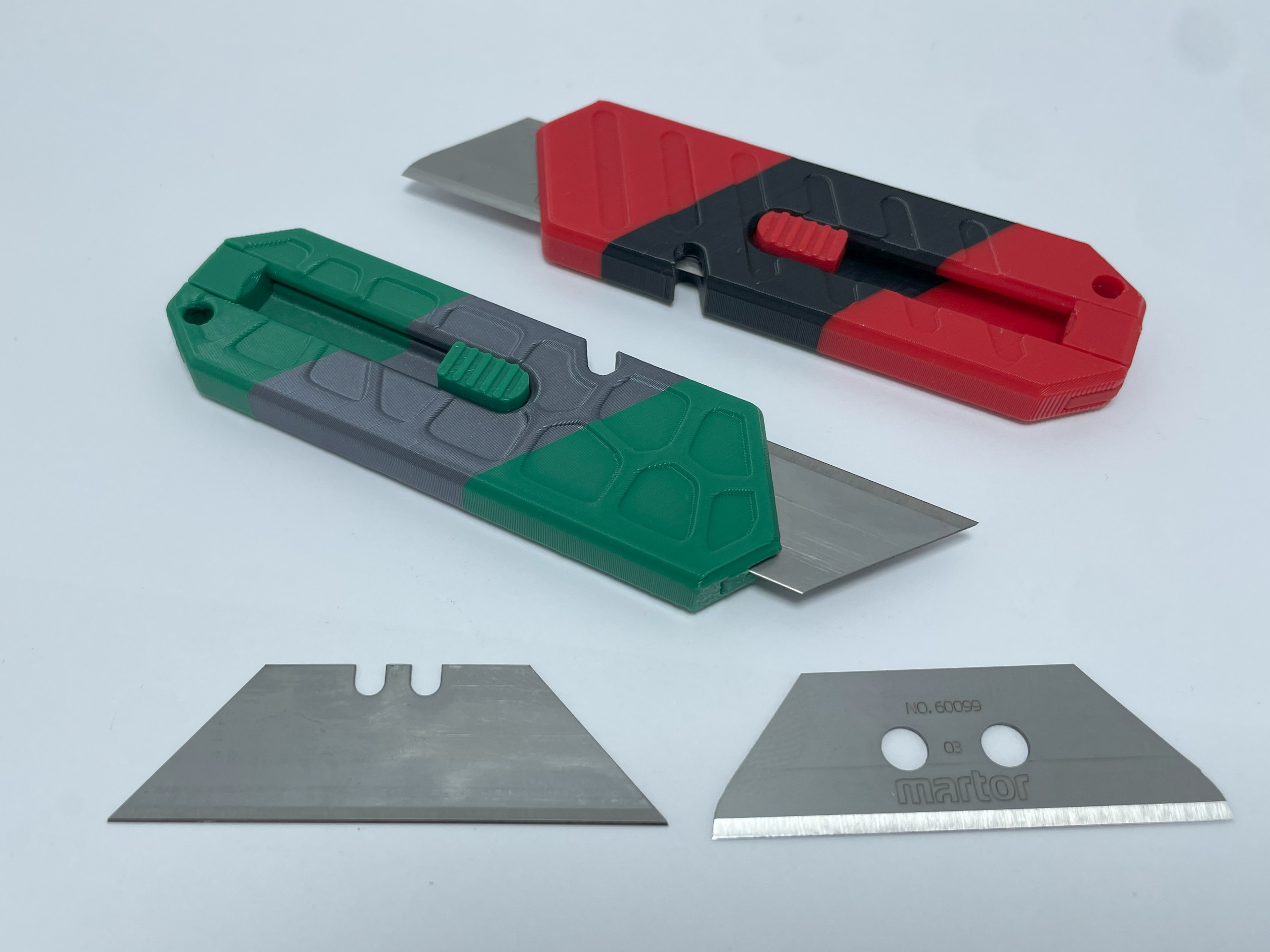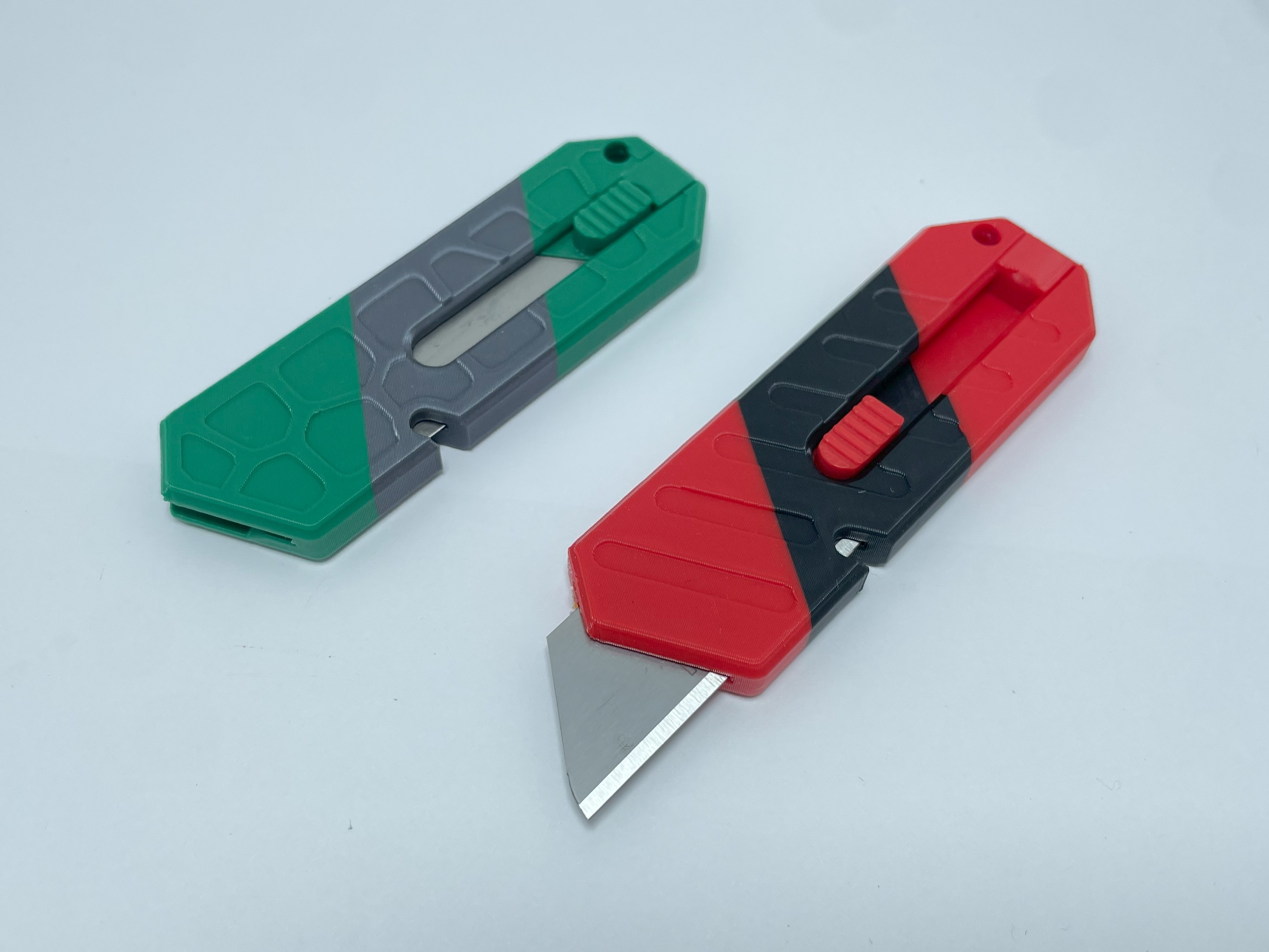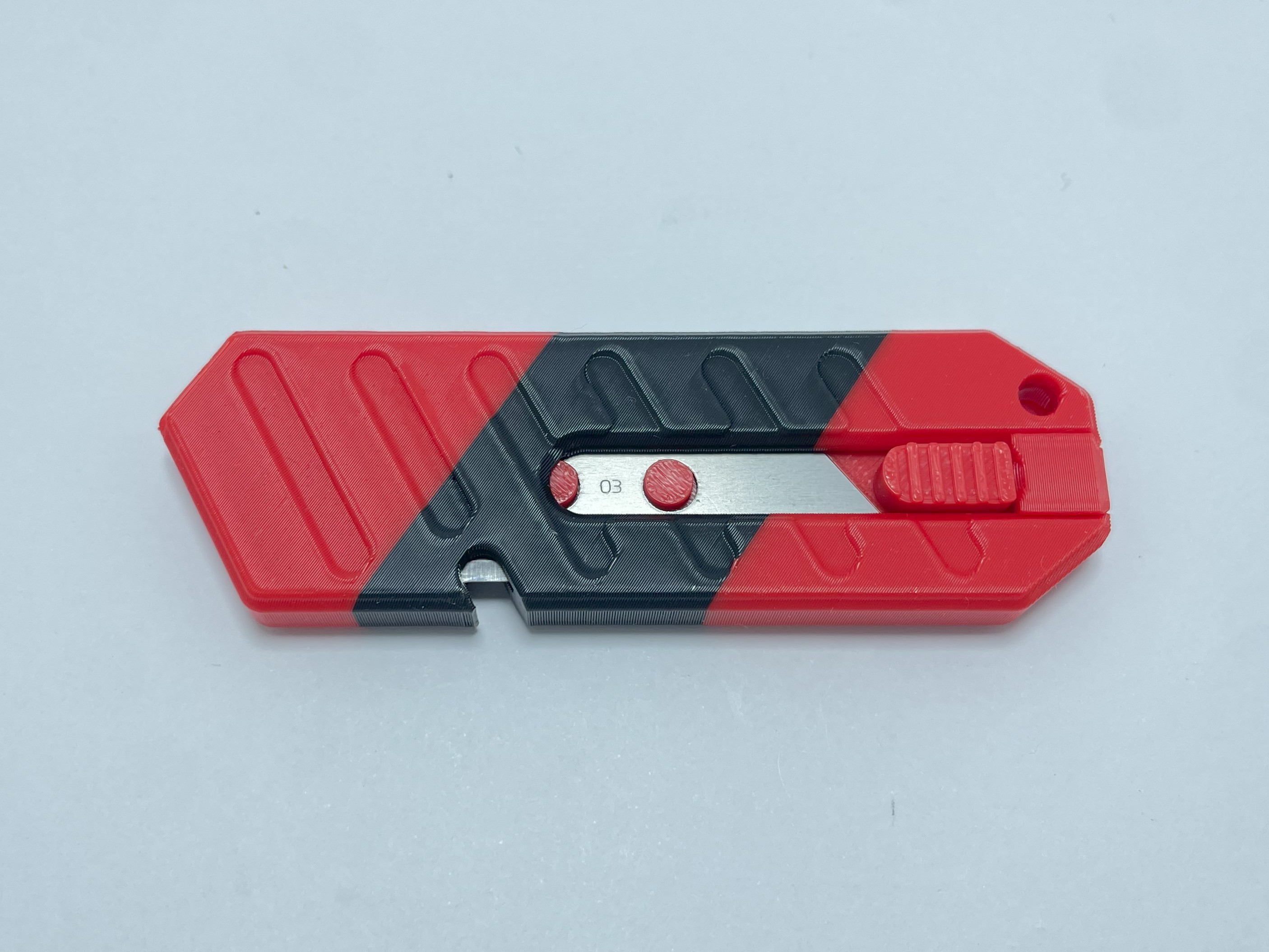 Dao cắt bỏ túi đa năng, tương thích với lưỡi dao tiêu chuẩn và Martor, có thể dùng làm móc khóa tiện lợi. Thiết kế nhỏ gọn, lý tưởng cho thợ thủ công, kỹ thuật viên, người đưa thư. In ở 45° với Brim, bôi trơn để dễ sử dụng.