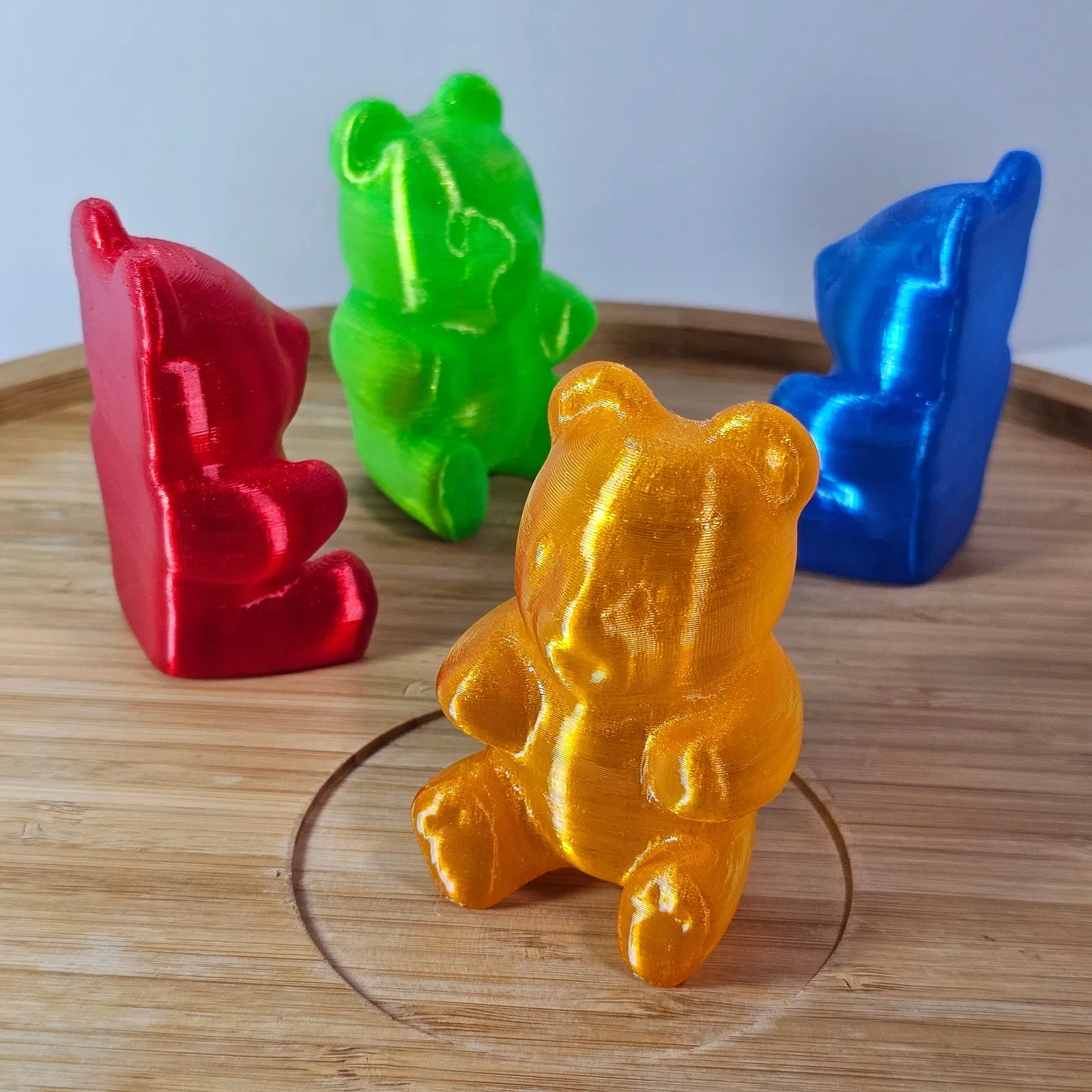 In những chú gấu dẻo (Gummy Bears) đầy màu sắc! Có tùy chọn làm thành đồ chơi phát ra tiếng kêu bằng TPU. Hướng dẫn chi tiết cách in, bao gồm cả file 3MF và các mẹo cài đặt để đạt được độ mềm xốp ưng ý. Tương thích với bộ phận "The Squeaker!" của SpoolDesigns.