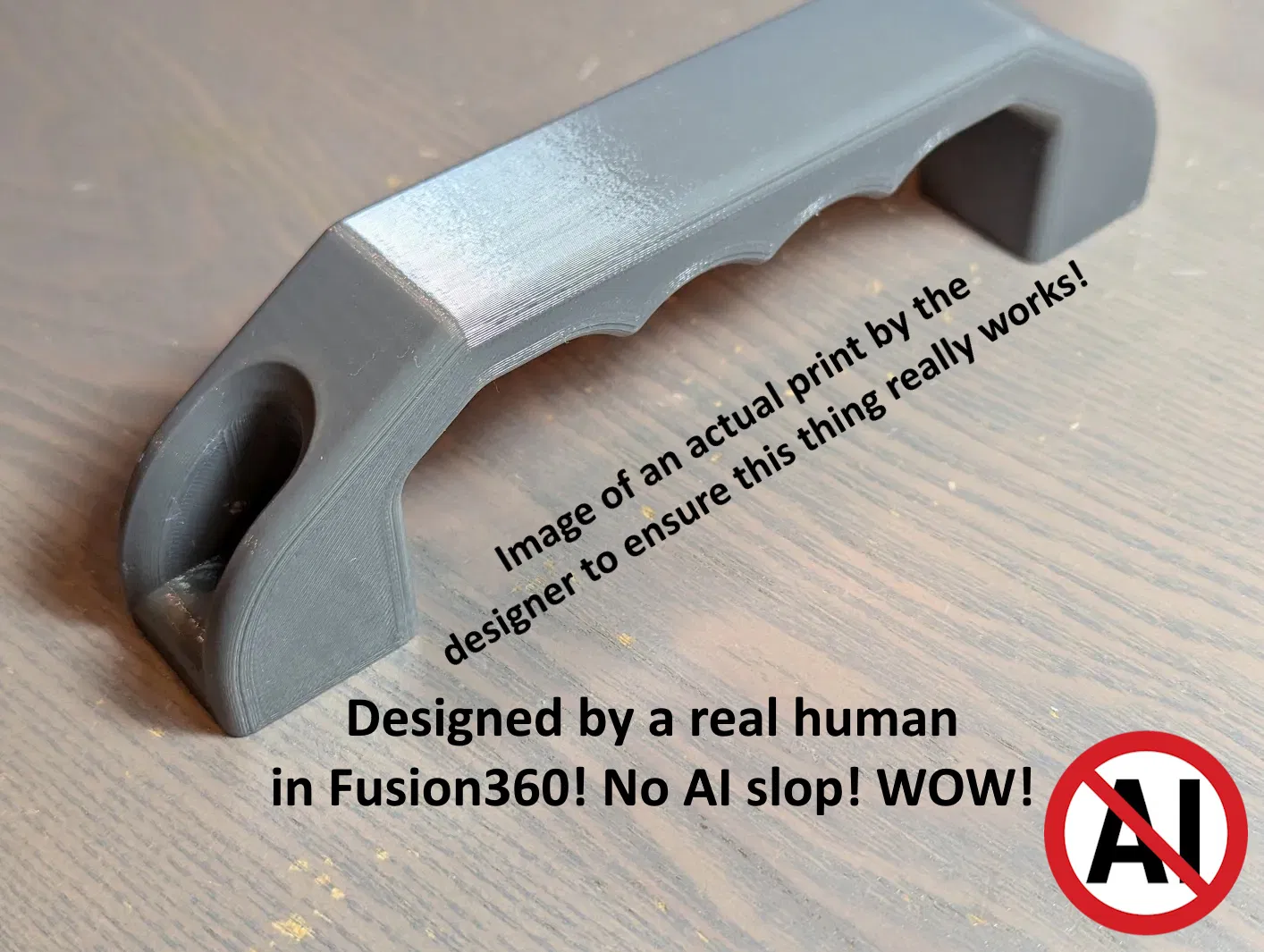 Một cái tay nắm khác. In nghiêng nó ra với bật hỗ trợ mọi nơi và chặn hỗ trợ ngoại trừ lỗ bu lông phía trên. Tui đang xài cái này ở ngoài trời và muốn nước có thể chảy ra khỏi bu lông thay vì một cái lỗ cho bu lông sẽ chứa nước.