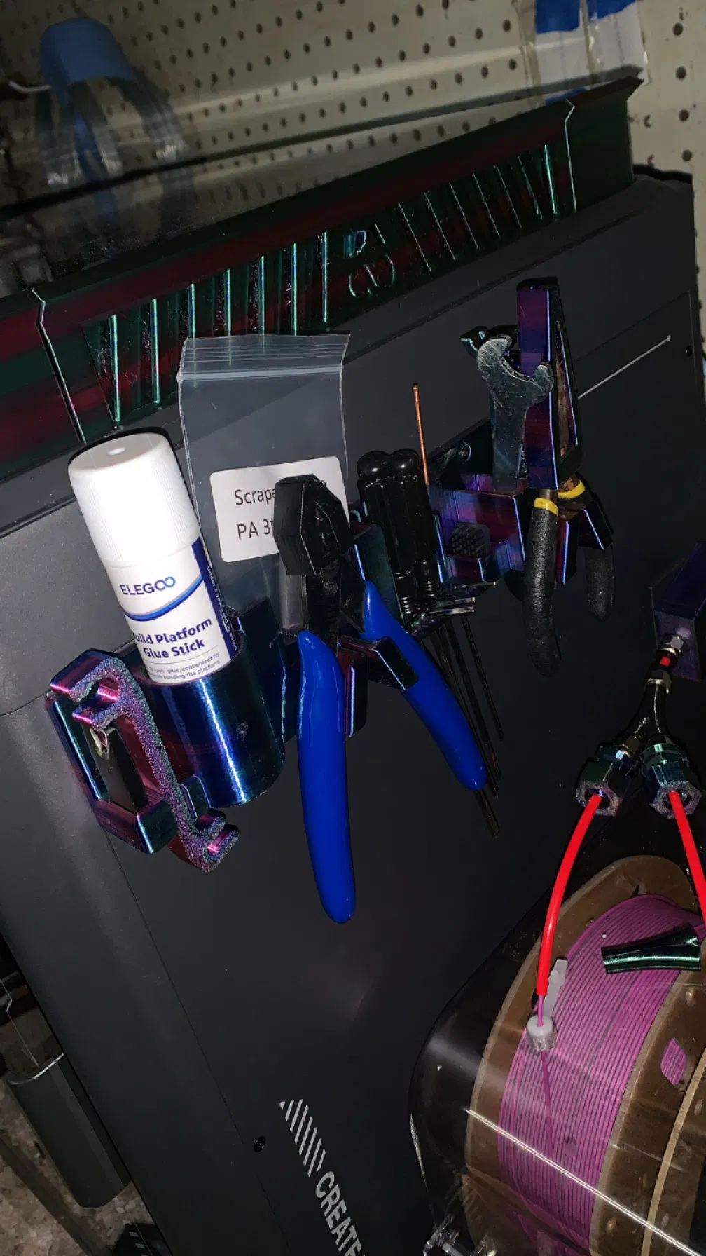 Phiên bản remix của khay đựng dụng cụ Elegoo Centauri Carbon, bổ sung thêm chỗ đựng các vật dụng cần thiết như kềm, bút Sharpie, RODSLOTH, dụng cụ bôi trơn và cờ lê. Có phiên bản kèm đế nam châm để gắn tiện lợi.