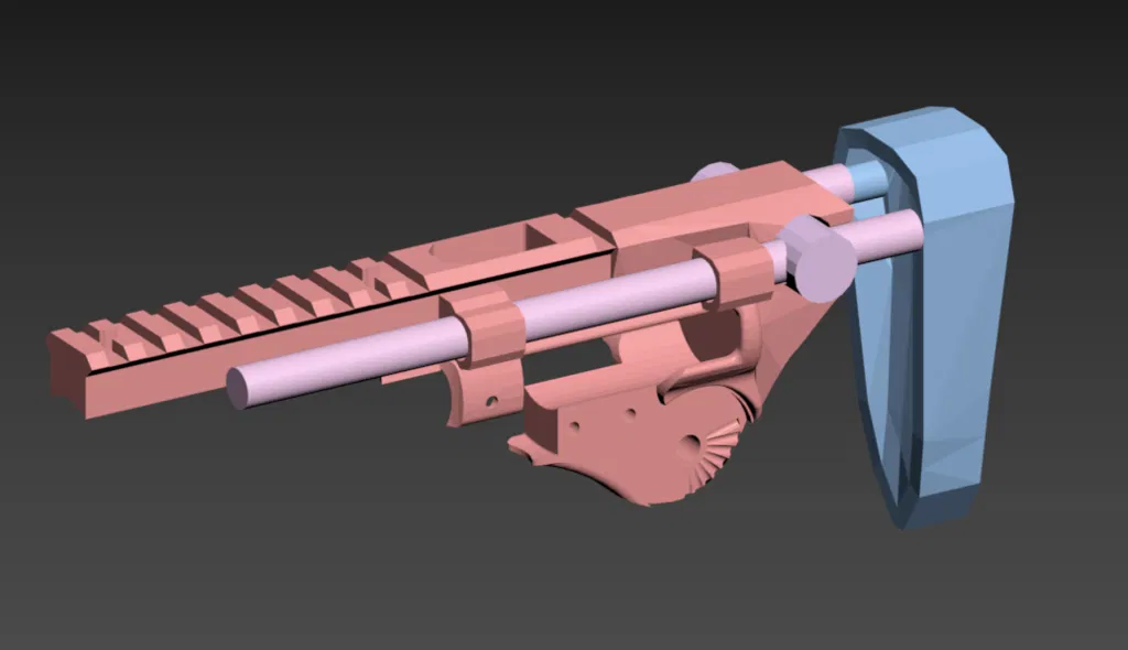 Đây là một bản remix từ mẫu gốc https://www.thingiverse.com/thing:4660187 để có thể hỗ trợ báng súng có thể thu gọn.