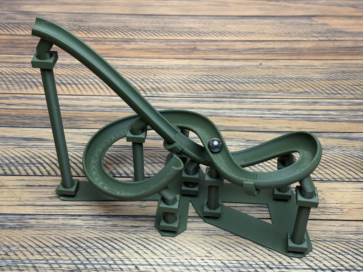 Một đường ray xe lăn marble có thể in thành nhiều mảnh và sử dụng vòng bi 1/2" (12.7mm). Bản in thử khớp nối được khuyến khích để đảm bảo độ chính xác trước khi in toàn bộ. Hướng dẫn in và lắp ráp chi tiết được cung cấp.