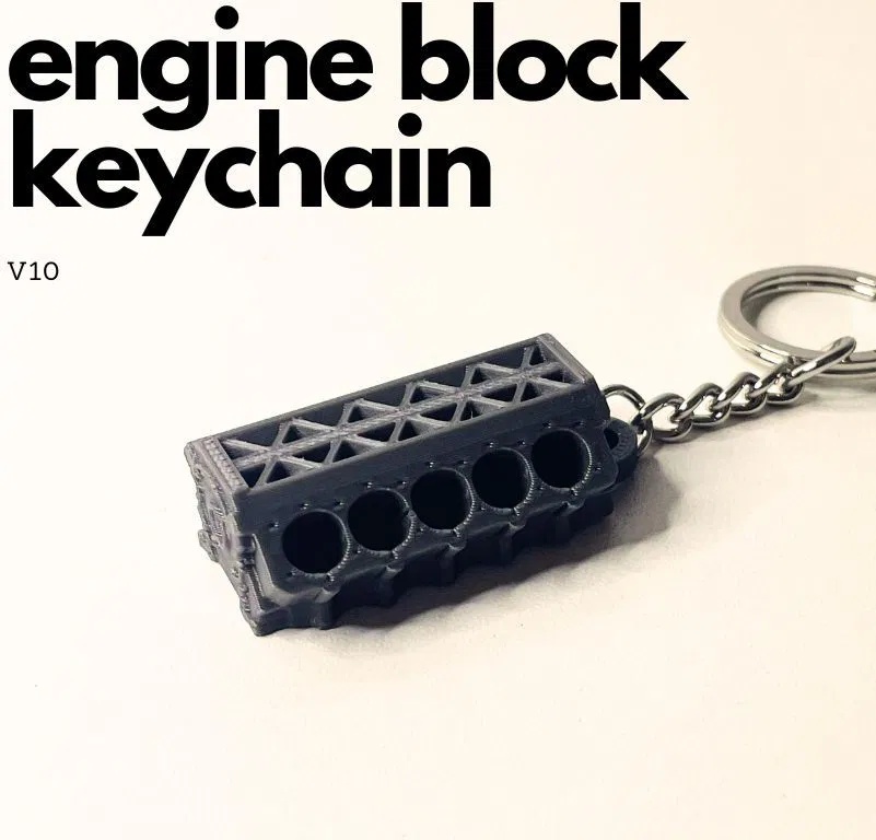 Móc khóa Khối động cơ V10 in 3D tỉ mỉ, là phụ kiện độc đáo cho người yêu xe hơi. Dễ in, mang đậm phong cách kỹ thuật, là món quà tuyệt vời. Nhắn tin nếu bạn muốn đặt mẫu động cơ khác nhé!