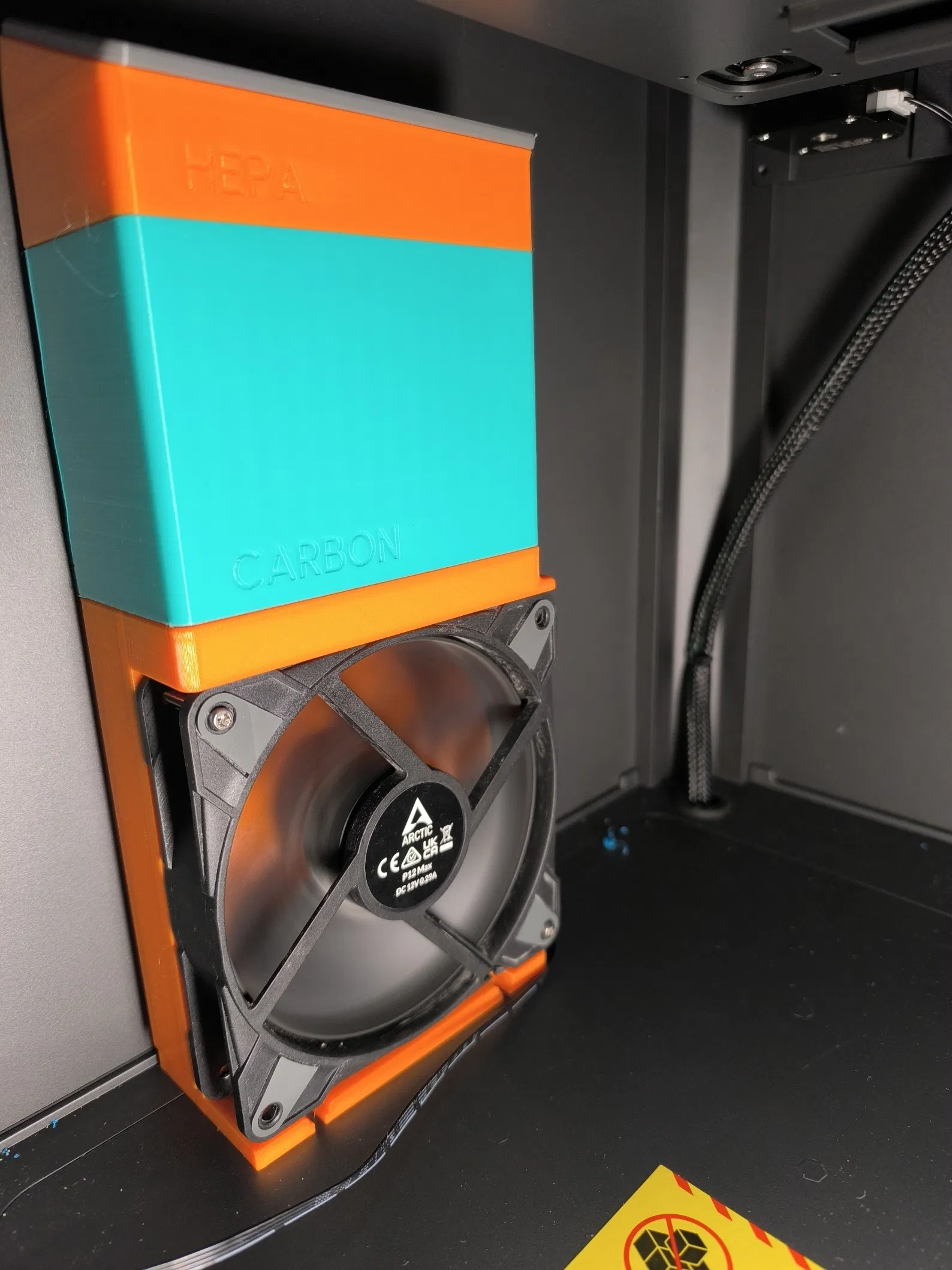 Phiên bản tùy chỉnh nhỏ của hộp đựng quạt 120mm cho Elegoo Centauri Carbon. Thiết kế mới có thêm phần lõm để đặt quạt phẳng và chỗ gắn nam châm 4x2mm, giúp việc lắp đặt dễ dàng hơn.