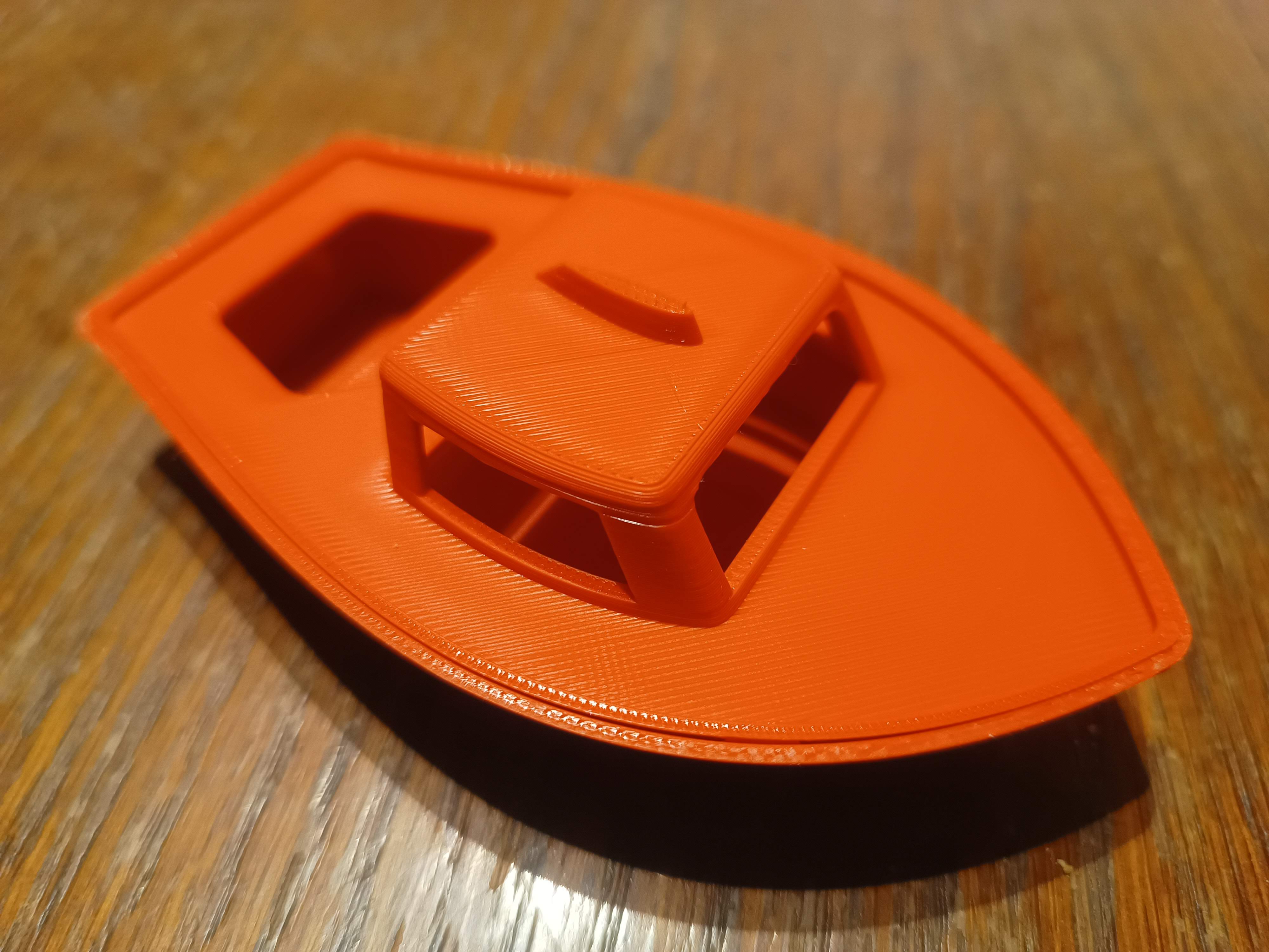 Nếu gặp vấn đề về độ bền hoặc khó khăn khi gỡ support, vui lòng kiểm tra lại thiết lập máy in và chất lượng sợi nhựa của bạn. Với sợi nhựa phù hợp, sẽ không có vấn đề gì về độ bền của mui thuyền - “đã thử nghiệm trên cậu con trai 10 tháng tuổi của tôi” (tất nhiên, nó vẫn là nhựa nên không chống được búa đâu :-)). Việc tách support cũng không có vấn đề gì nếu dùng dụng cụ phù hợp và một chút kiên nhẫn.