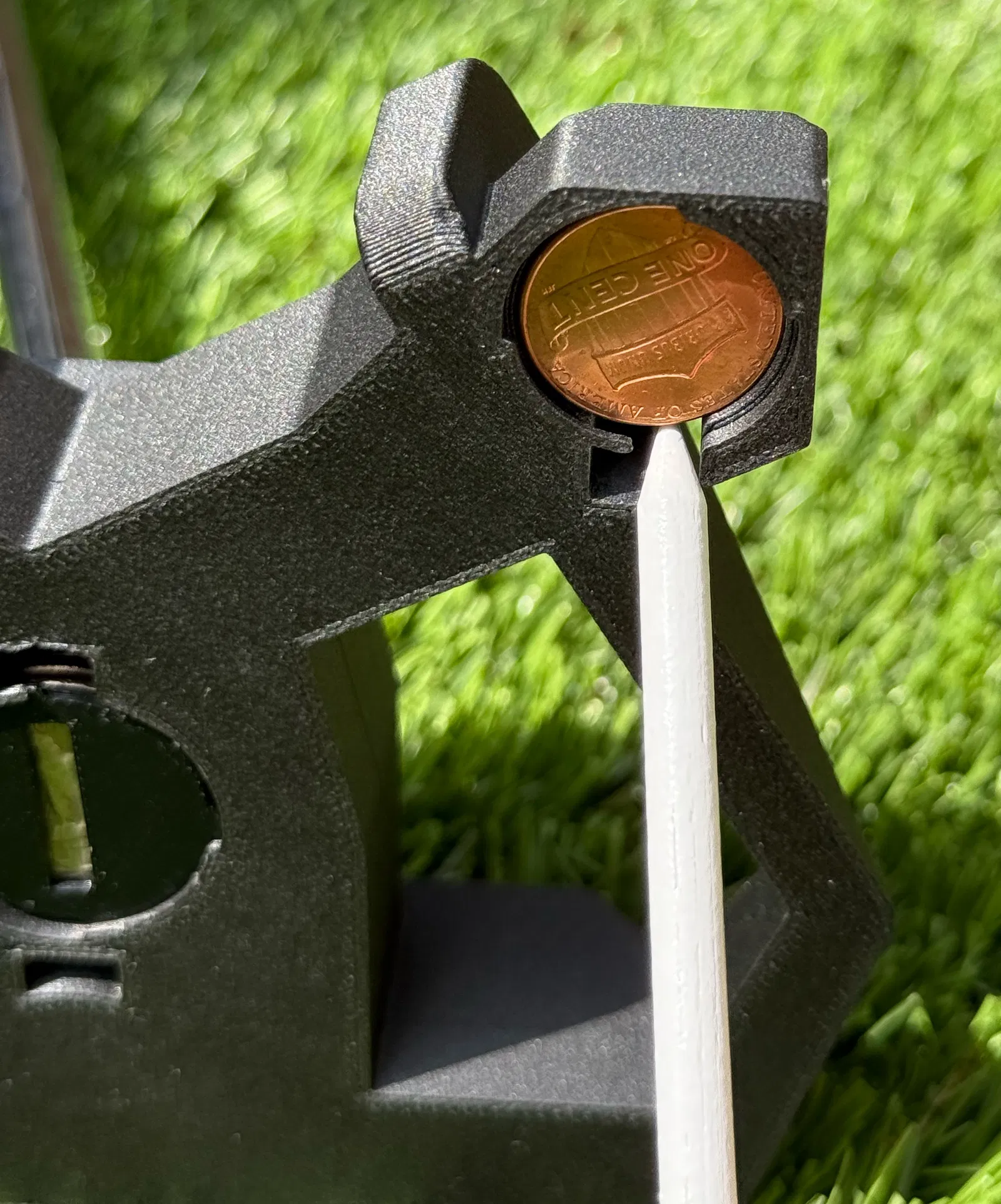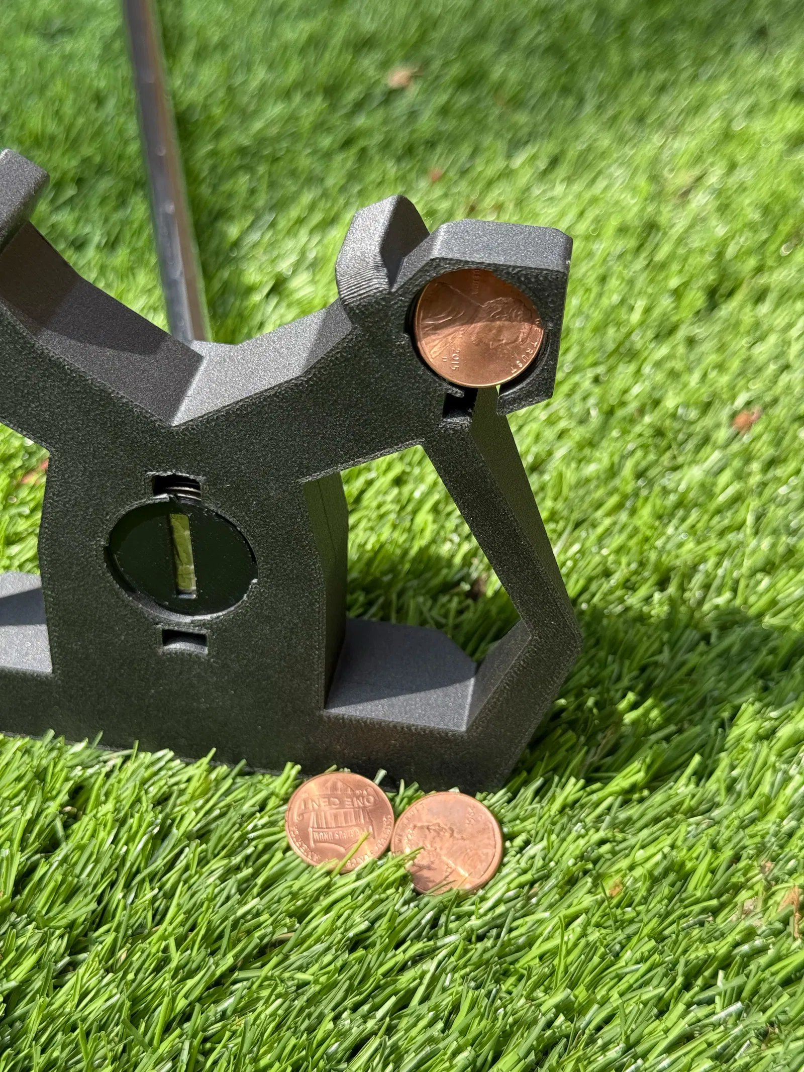 Tôi biết rằng có những cây gậy putter in 3D thành công khác, nhưng không có cái nào đáp ứng nhu cầu của tôi về một cây gậy có chi phí tối thiểu, vì chúng yêu cầu vật liệu bên ngoài. Vì vậy, tôi đã bắt tay vào thiết kế với mục tiêu chi phí cụ thể, và sử dụng tiền xu Mỹ thông thường để làm trọng lượng cho cây gậy.
