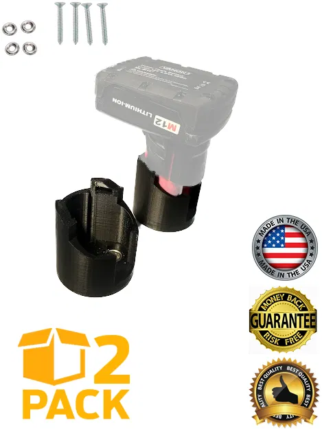 Giữ pin Milwaukee M12 của bạn an toàn với giá đỡ pin khóa được này, lý tưởng cho xe tải, công trường và môi trường rung lắc. Thiết kế khóa kiểu dụng cụ đảm bảo pin không bị rơi khi lắp ngược hoặc trên đường xóc. In bằng ABS hoặc PETG để có độ bền tốt nhất.