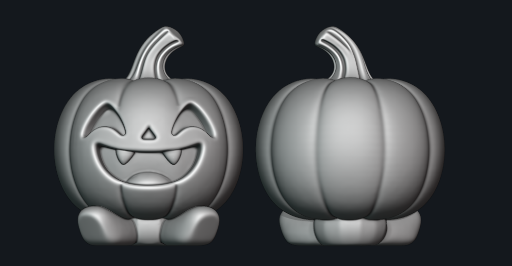 Một quả bí ngô phong cách chibi dễ thương, hoàn hảo để trang trí Halloween hoặc làm mô hình sưu tầm!
