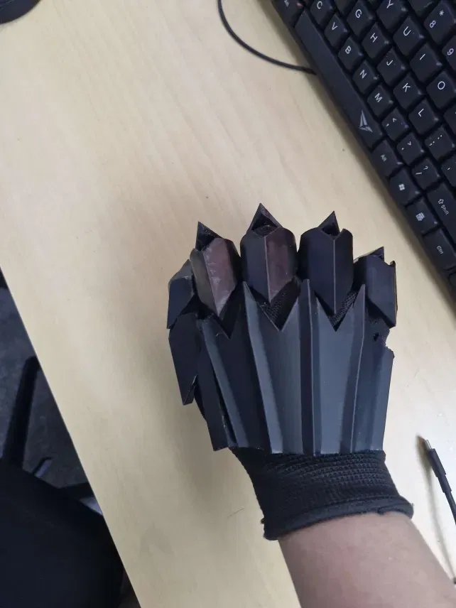 v1 là cái găng tay phẳng (hình 4), mặt lưng có giáp dày hơn chút. Còn cái găng tay nhọn là v2 (hình 1), nó nhìn sắc sảo và chi tiết hơn nhiều. Tui khuyên là in thử 1 cái khớp ngón tay trước để coi vừa không, rồi chỉnh kích thước lại cho phù hợp nha.