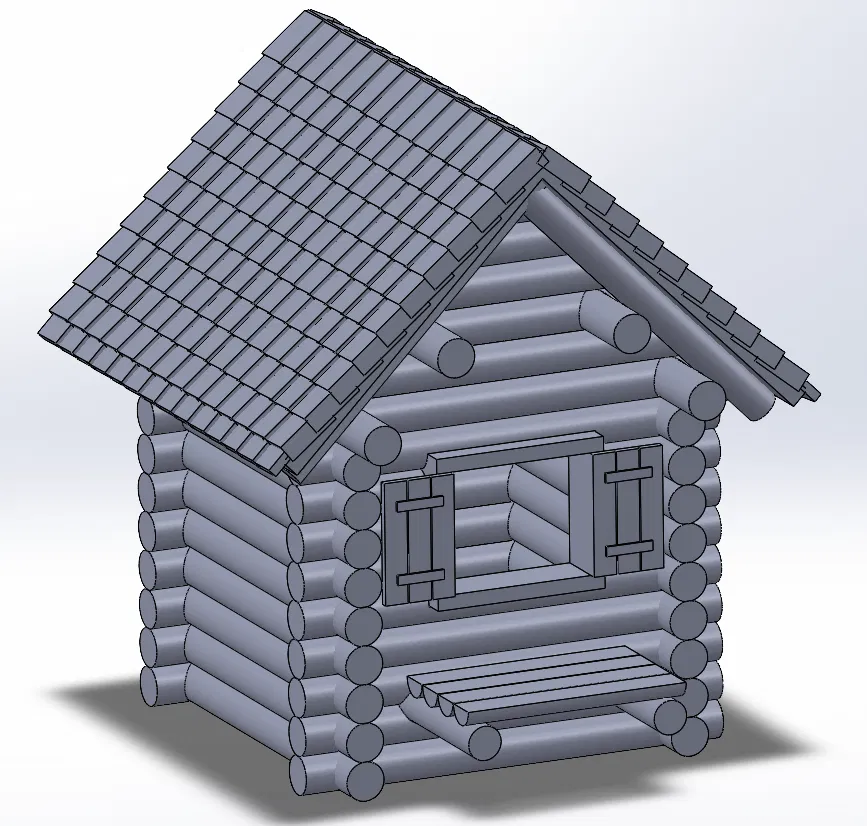 Đối với mái nhà, mấy bạn có một lựa chọn: hoặc là in nguyên khối (cái này có thể hơi khó với diện tích bàn in và độ cồng kềnh tổng thể) hoặc là in thành hai nửa. Nếu mấy bạn in thành hai nửa, nhớ in "Log Cabin Roof_halved.stl" một lần bình thường, và một lần lật ngược. In "Log Cabin Roof joint" 5 lần.