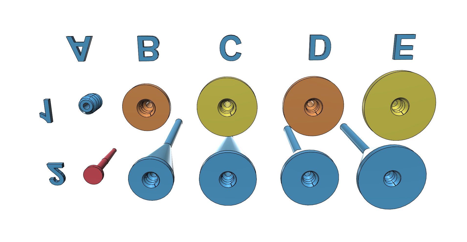 Phao câu cá này in cực dễ, không cần support, không cần keo. Dễ dàng điều chỉnh. Chỉ cần khoảng 3-5m filament. Kích thước đường kính: B-22mm, C-28mm, D-28mm, E-33mm. Đã thử nghiệm với độ dày lớp 0.2mm. Nên dùng vật liệu dẻo.
