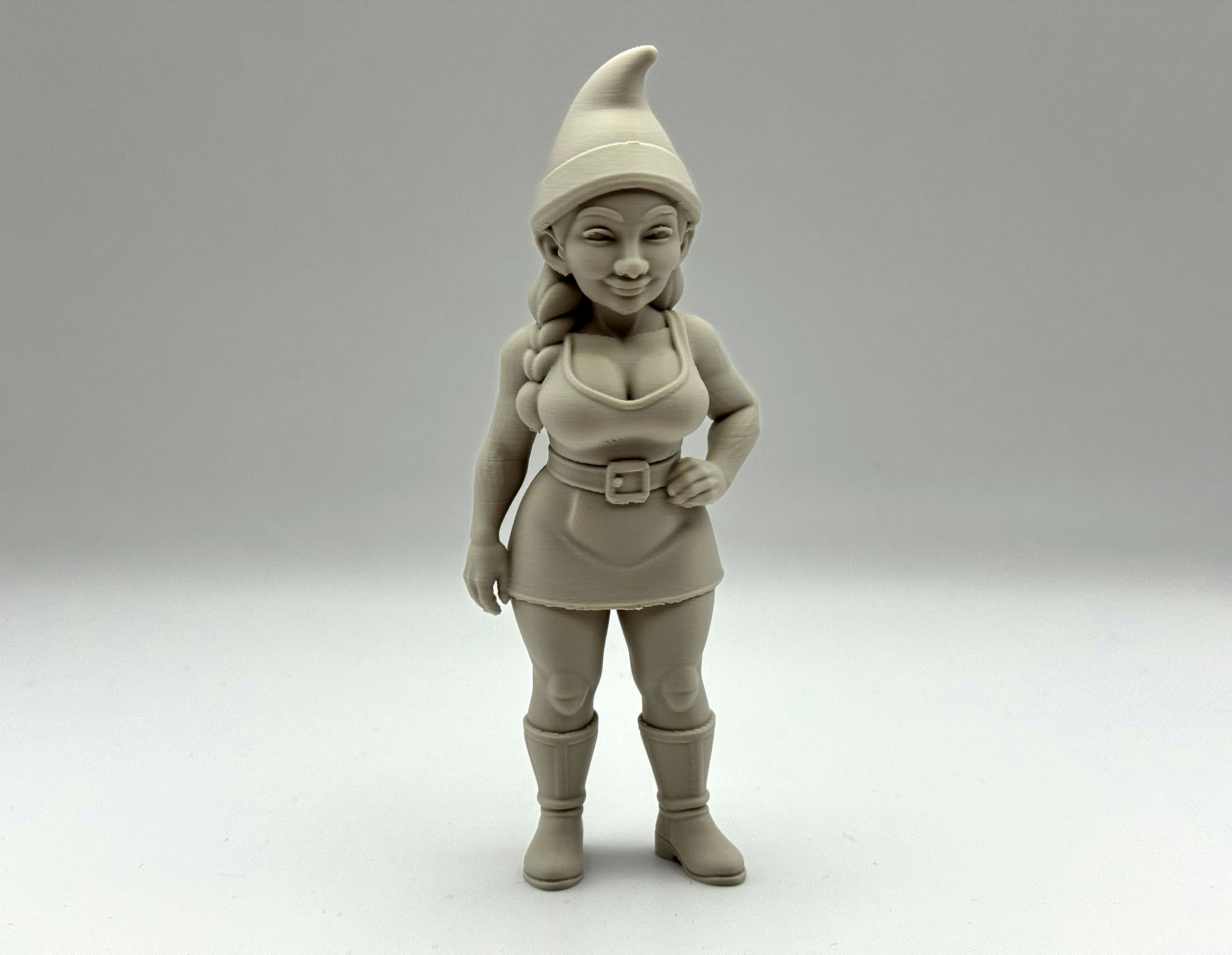 Thêm chút duyên dáng và tinh nghịch cho khu vườn hay kệ sách của bạn với bức tượng nữ thần lùn xinh đẹp này! Cô ấy mang đến cá tính, phong cách và một chút táo bạo cho truyền thống thần lùn cổ điển.
