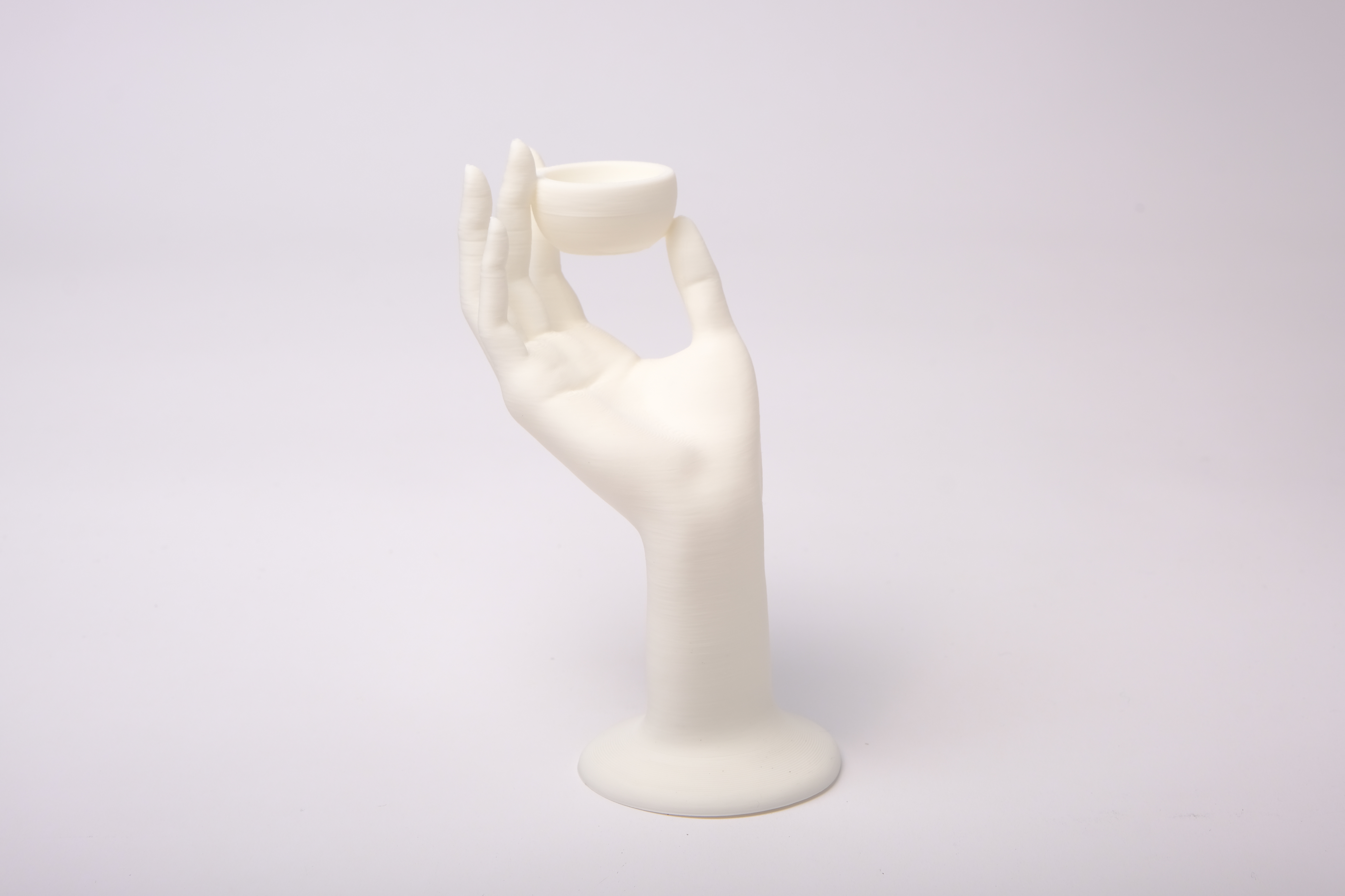 Lấy cảm hứng từ ngôn ngữ của cử chỉ và nghệ thuật tối giản, thiết kế in 3D này kết hợp cả hình thức và chức năng trong một món đồ mang tính chiêm nghiệm. Bàn tay vươn lên từ một đế tròn mềm mại, với các ngón tay được tạo hình thanh lịch, giữ một ngọn nến votive bằng sự tinh tế êm đềm. Lớp hoàn thiện mờ tổng thể càng làm tăng thêm cảm giác điêu khắc của nó - gần giống như một cổ vật bảo tàng, nhưng lại mang tâm hồn thực tế của một chiếc đế nến.