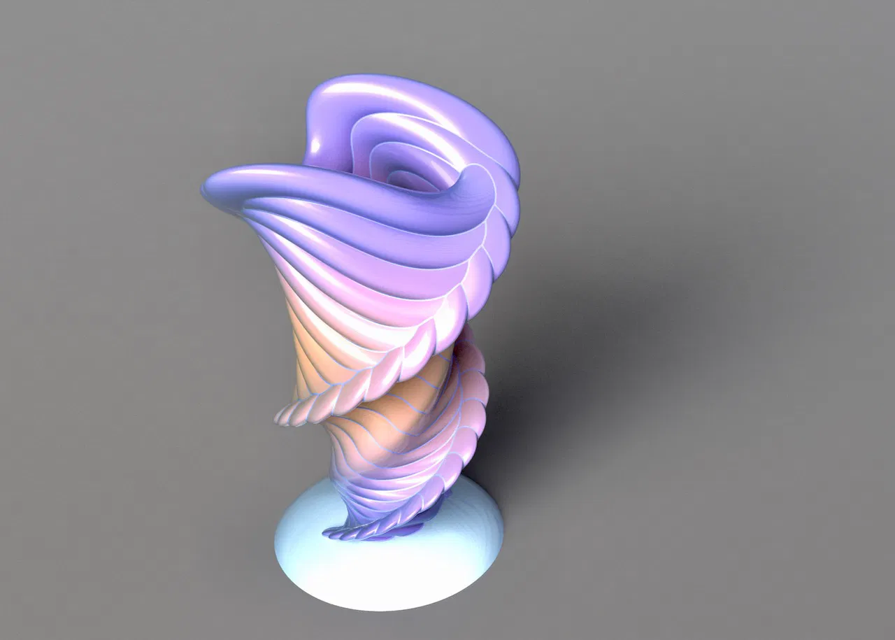 Một tác phẩm điêu khắc nghệ thuật hình chậu hoa xoắn Toroid. Có thể dùng làm bình hoa, chậu cây, cúp, hoặc vật trang trí nhà cửa, văn phòng. In không cần support, khuyến khích dùng resin để chống thấm nếu làm bình hoa.